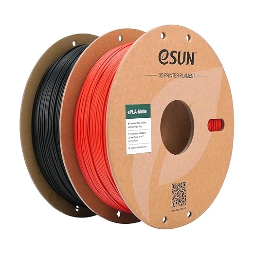 eSUN PLA Mate 3D Filamento 1.75mm, 2x1kg, Negro y Rojo 🎨