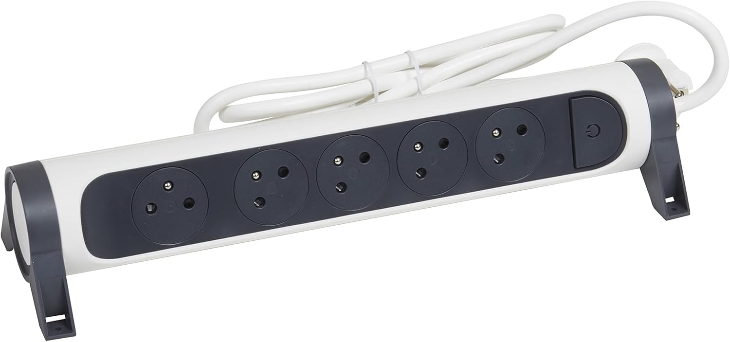 Legrand multiprise rotative avec interrupteur et voyant LED – 5 prises surface avec terre, câble 1,5 m, blanc et gris foncé