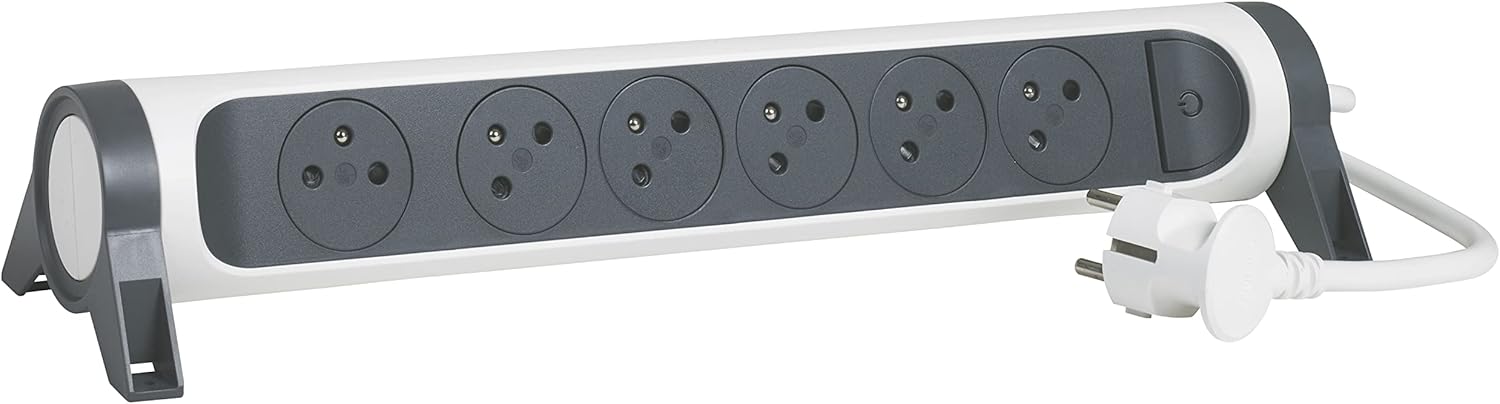Legrand multiprise rotative avec interrupteur et voyant LED — 6 prises surface avec terre, cordon 3 m (blanc & gris foncé)