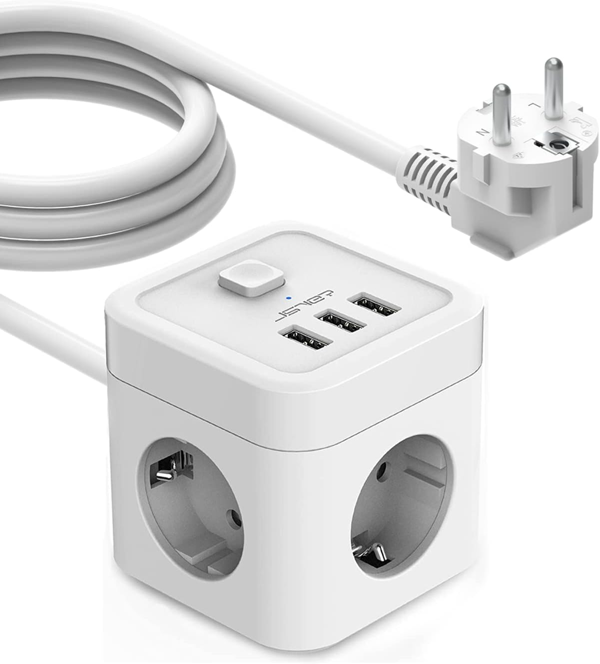JSVER Multiprise 3M : bloc 6 prises avec 4 ports USB (3 USB-A + 1 USB-C) et protection surtension