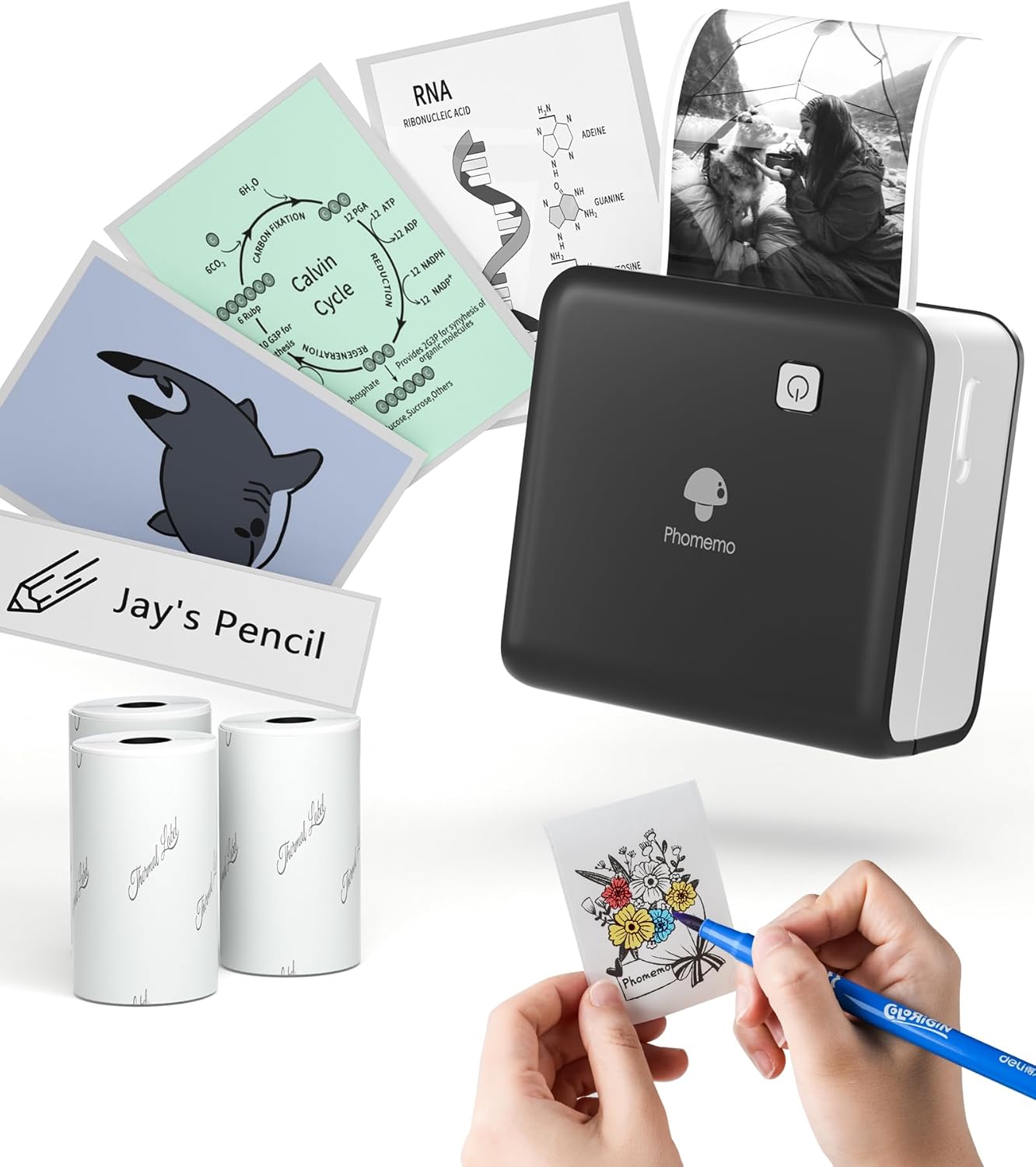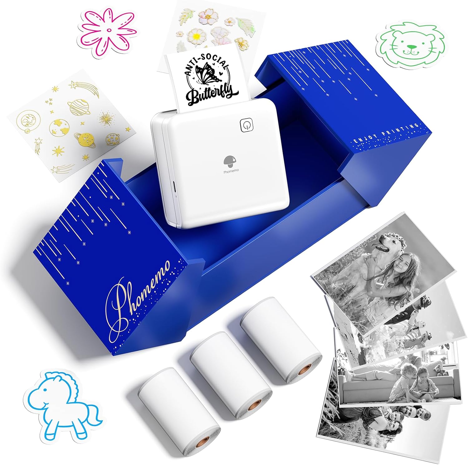 Phomemo M02 Pro : mini imprimante photo portable sans fil (300 dpi) avec rouleaux de papier pour étiquettes