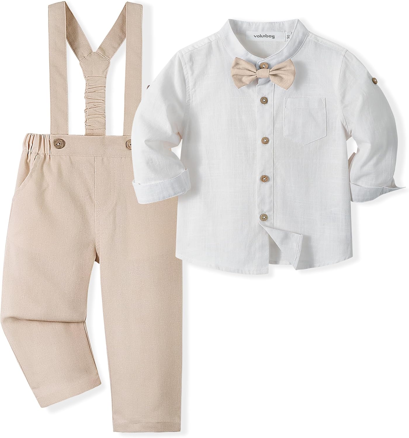 Ensemble costume bébé garçon Volunboy (4 pièces) coton lin pour cérémonie, chemise + nœud papillon + bretelles + pantalon