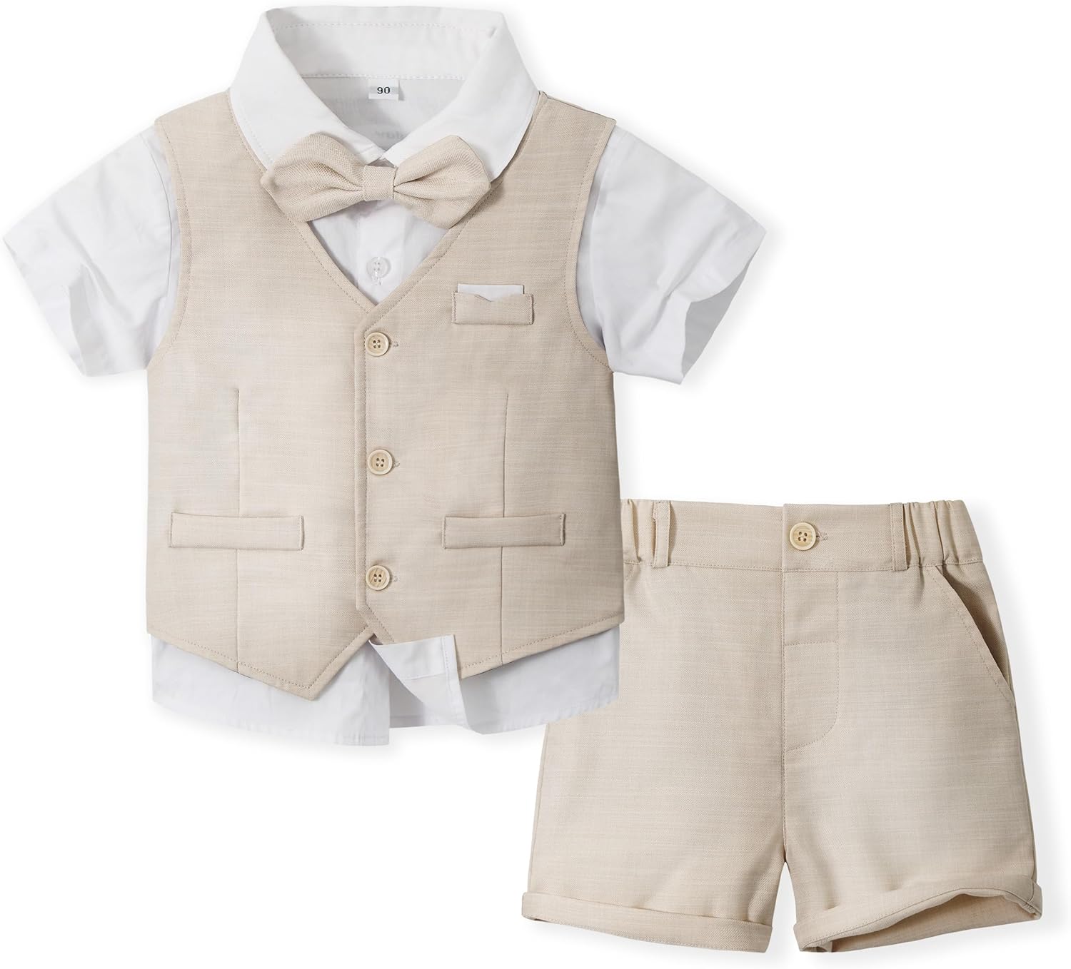 Volunboy Bébé Garçon – Ensemble costume 4 pièces pour mariage d’été (chemise courte, gilet, corbata amovible, short)