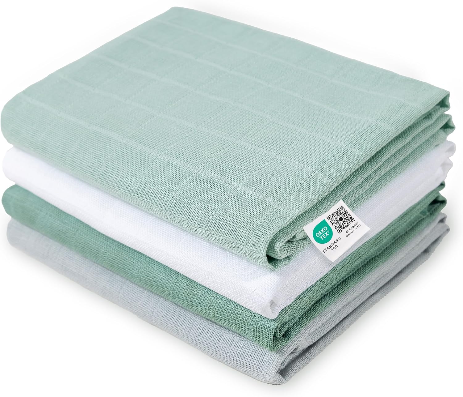 MAKIAN Lange bébé en mousseline 70x70 cm (lot de 4) — coton double gaze certifié Oeko-Tex, verts/blanc/menthe/gris