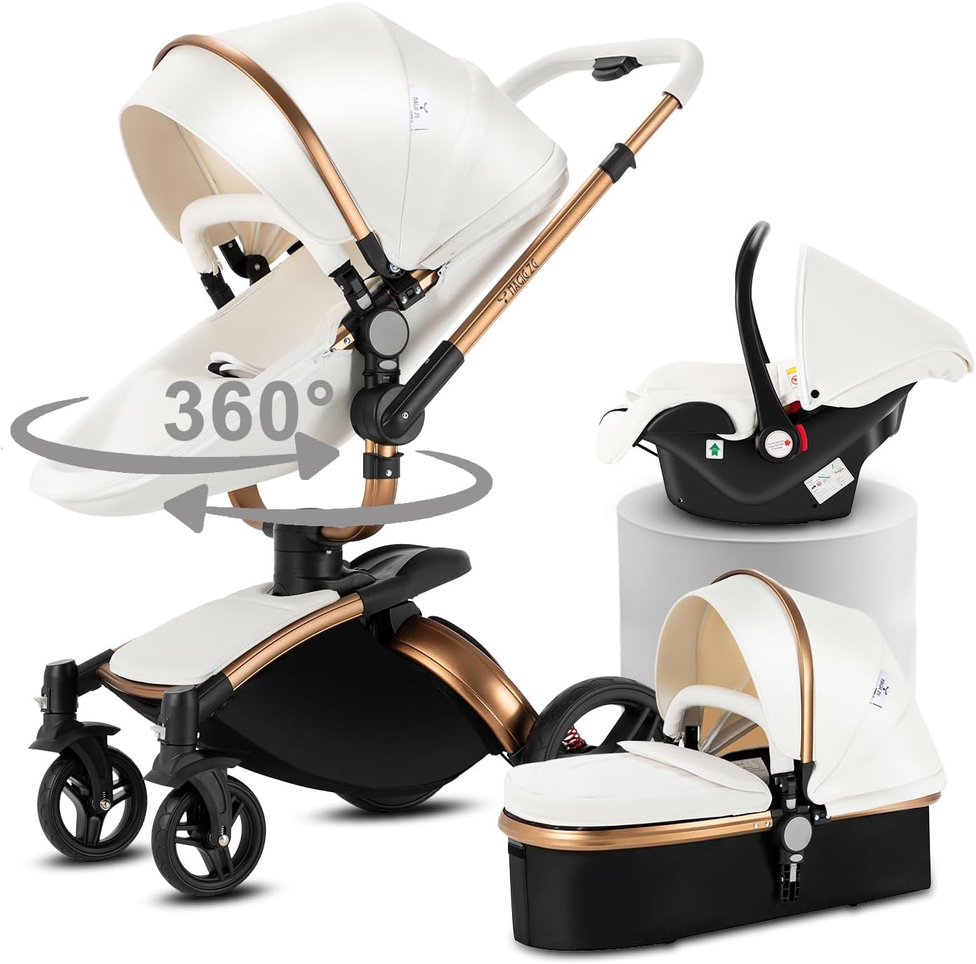 Veitoalioy Cuir PU Poussette 3 en 1 360° avec siège pivotant et vue haute (0-36 mois) – modèle 906 White