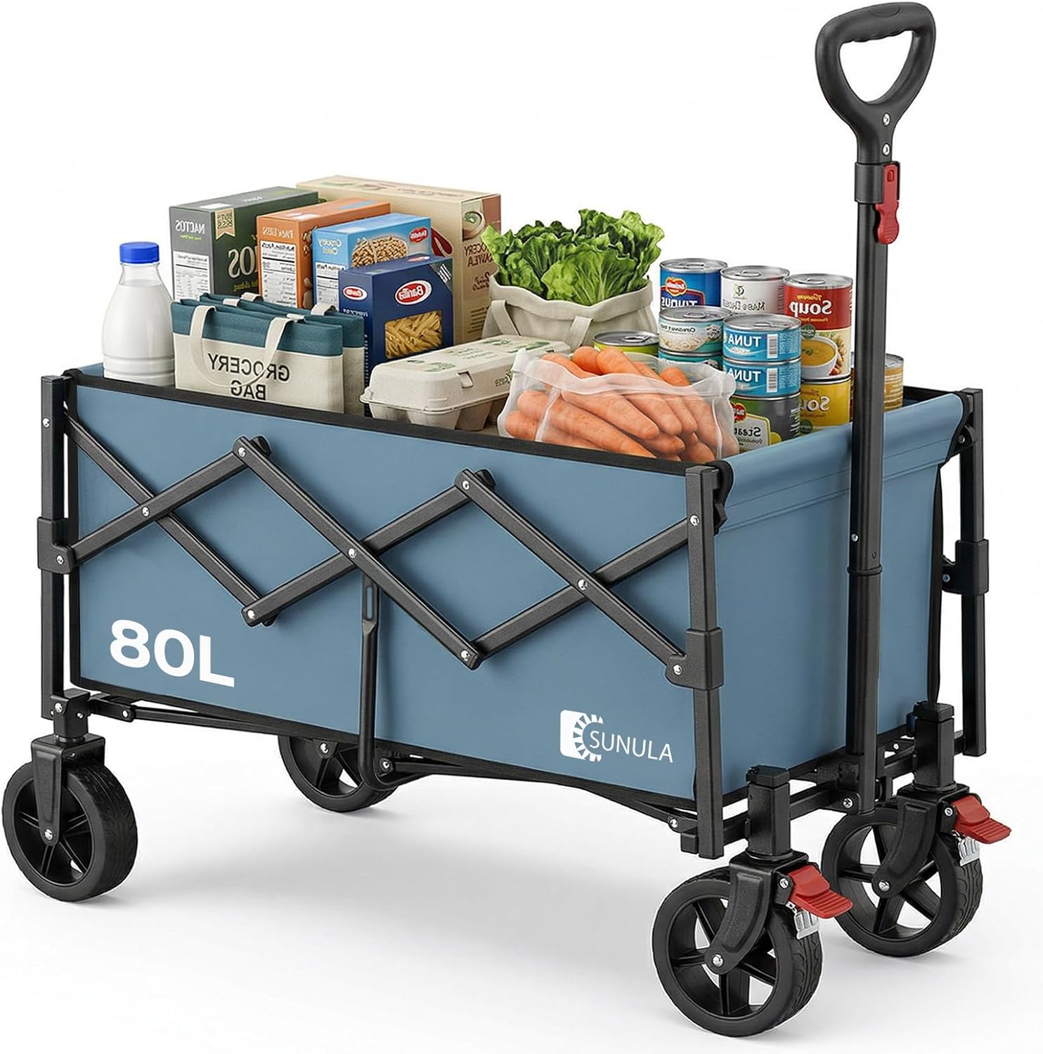 SUNULA Chariot Pliable Petit 80L avec Freins, structure 100 kg et poids réduit – Bleu