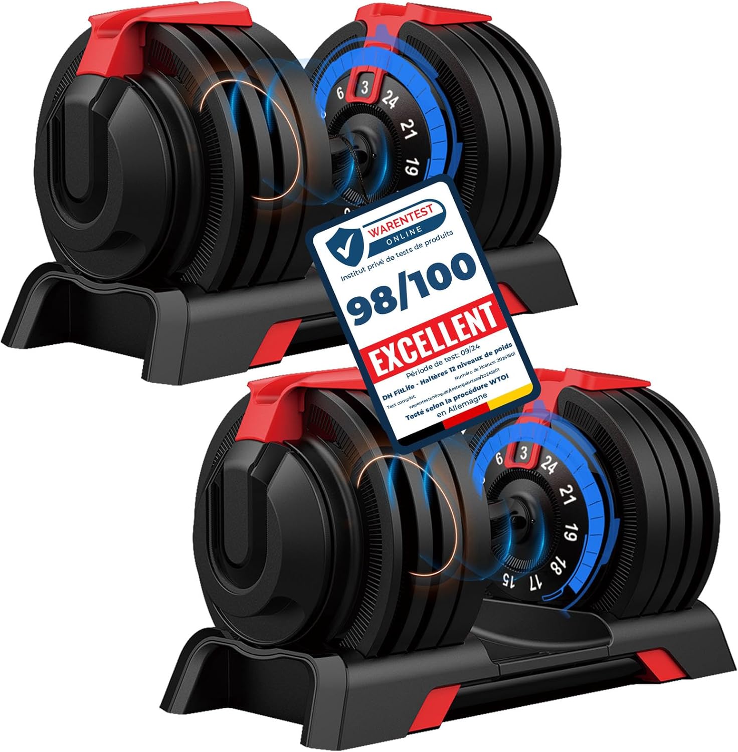 DH FitLife 24 kg : haltères réglables de 3 à 24 kg (12 niveaux) avec système d’a...