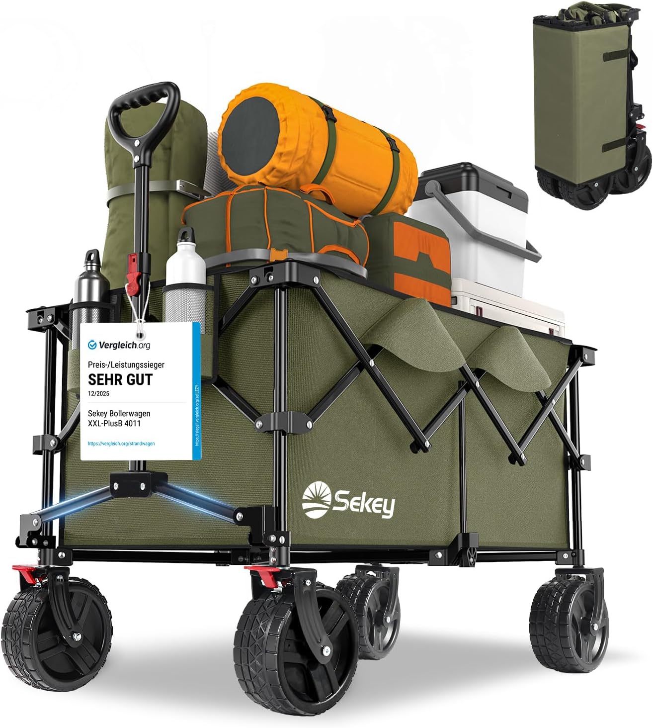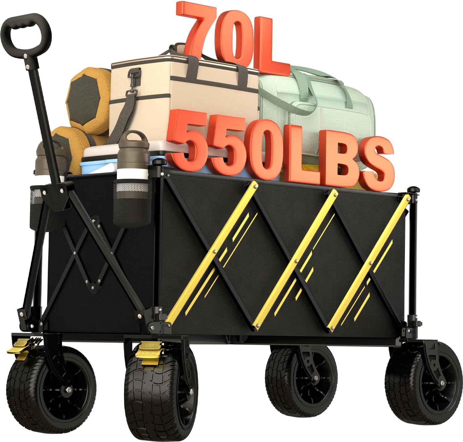 Chariot de jardin pliable 140 L, portable et robuste (jusqu’à 130 kg) pour camping, shopping et sports plein air