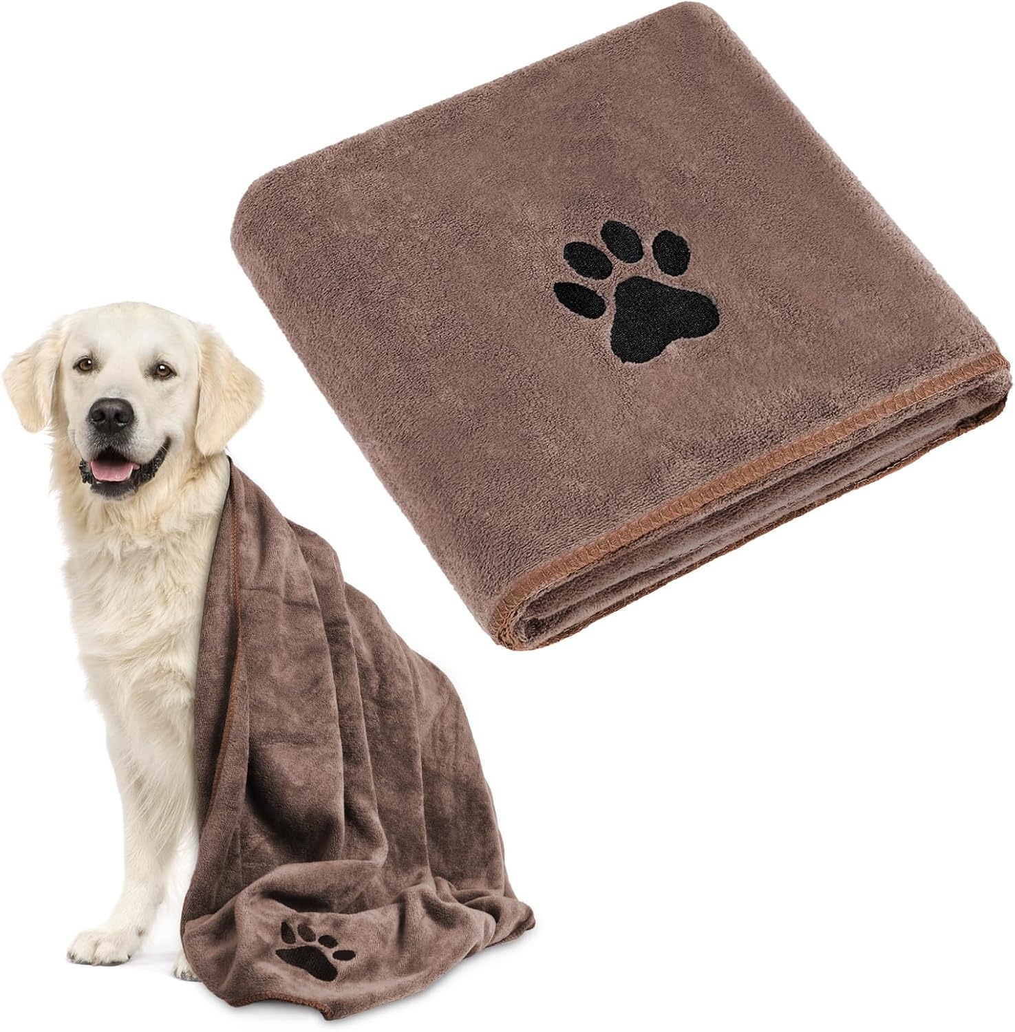 L’intérêt d’une serviette pour chien, c’est surtout le moment juste après l’eau. Imaginez : retour de balade, chien trempé, vous voulez l’essuyer rapidement avant qu’il ne s’installe sur le canapé. Une grande serviette comme celle-ci permet de couvrir plus largement le corps, au lieu de batailler avec une petite taille.