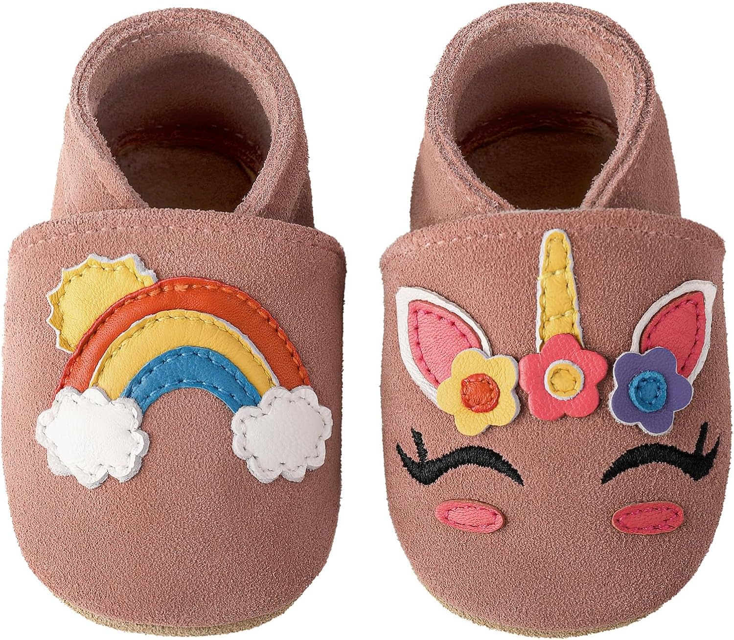 Aiseyi chaussons pour bébé en cuir souple antidérapants avec élastique