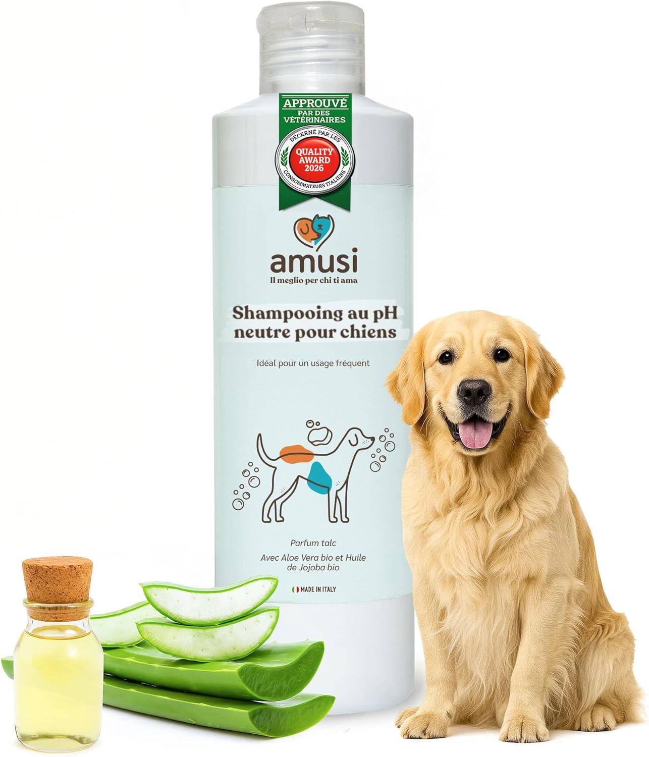 - Nom: AMUSI Shampoing Chien Neutre – 250ml