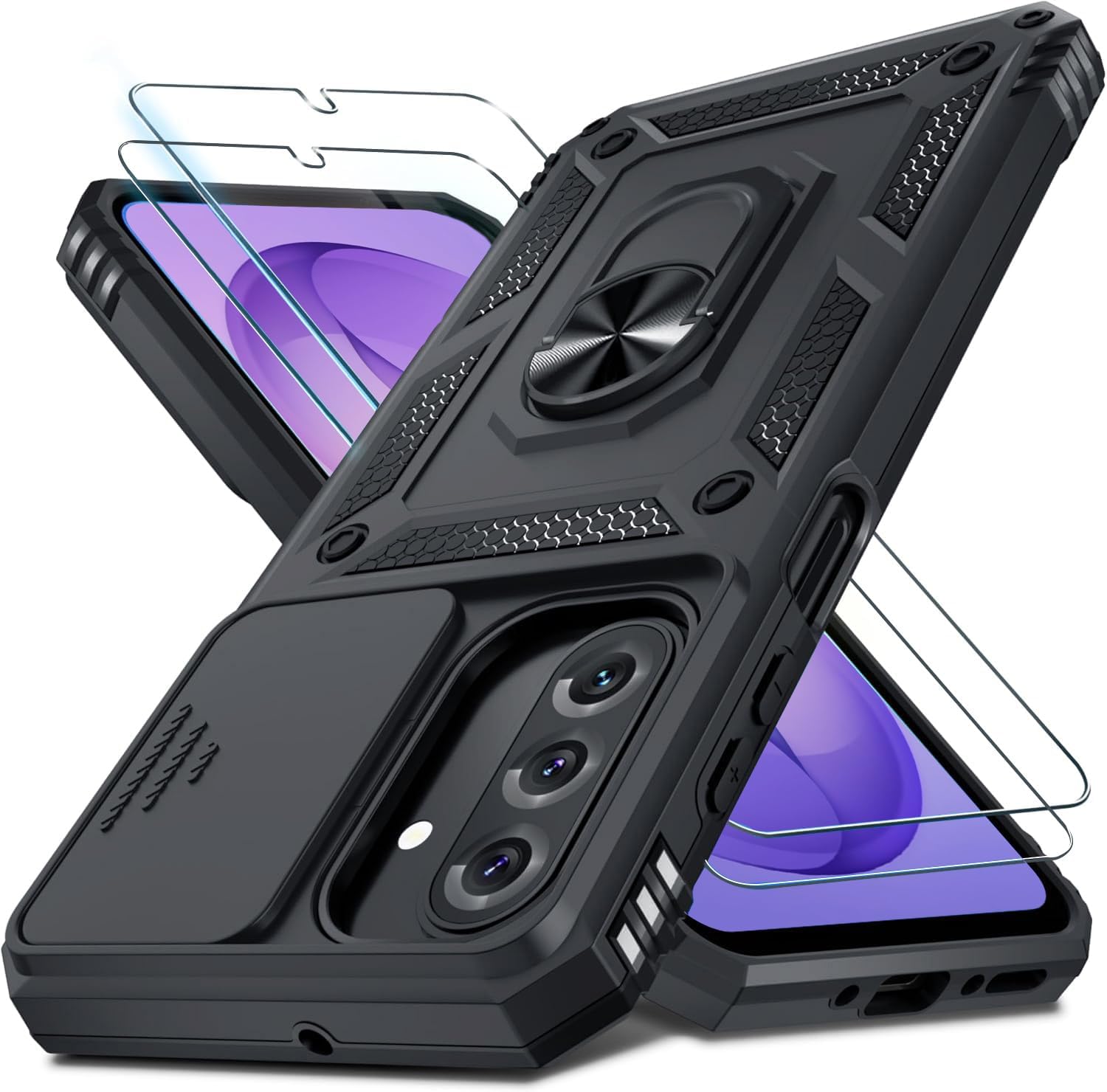 ANLYGOLD Coque Galaxy A57 5G avec 2 Verre Trempé et Couvercle Coulissant de Caméra – Protection renforcée et Support 360°