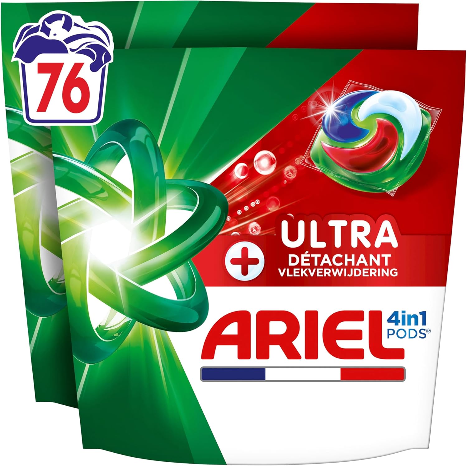 Ariel PODS 4en1 Ultra Détachant – Lessive en capsules, 88 lavages (2x44), taches jusqu’à 7 jours