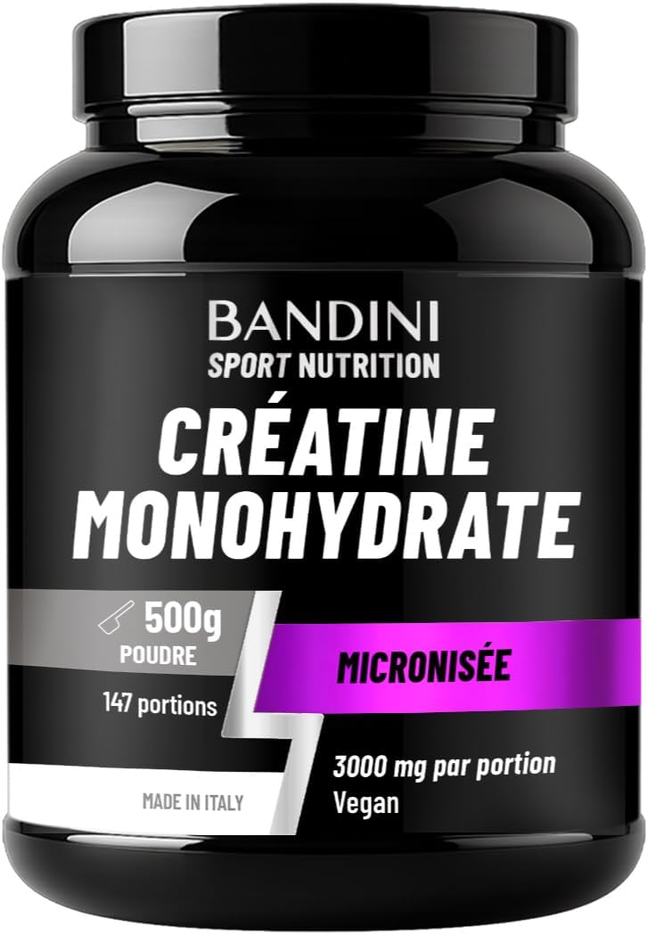 Bandini Créatine Monohydrate en poudre 500 g (147 portions) – 100% pure, doseur inclus