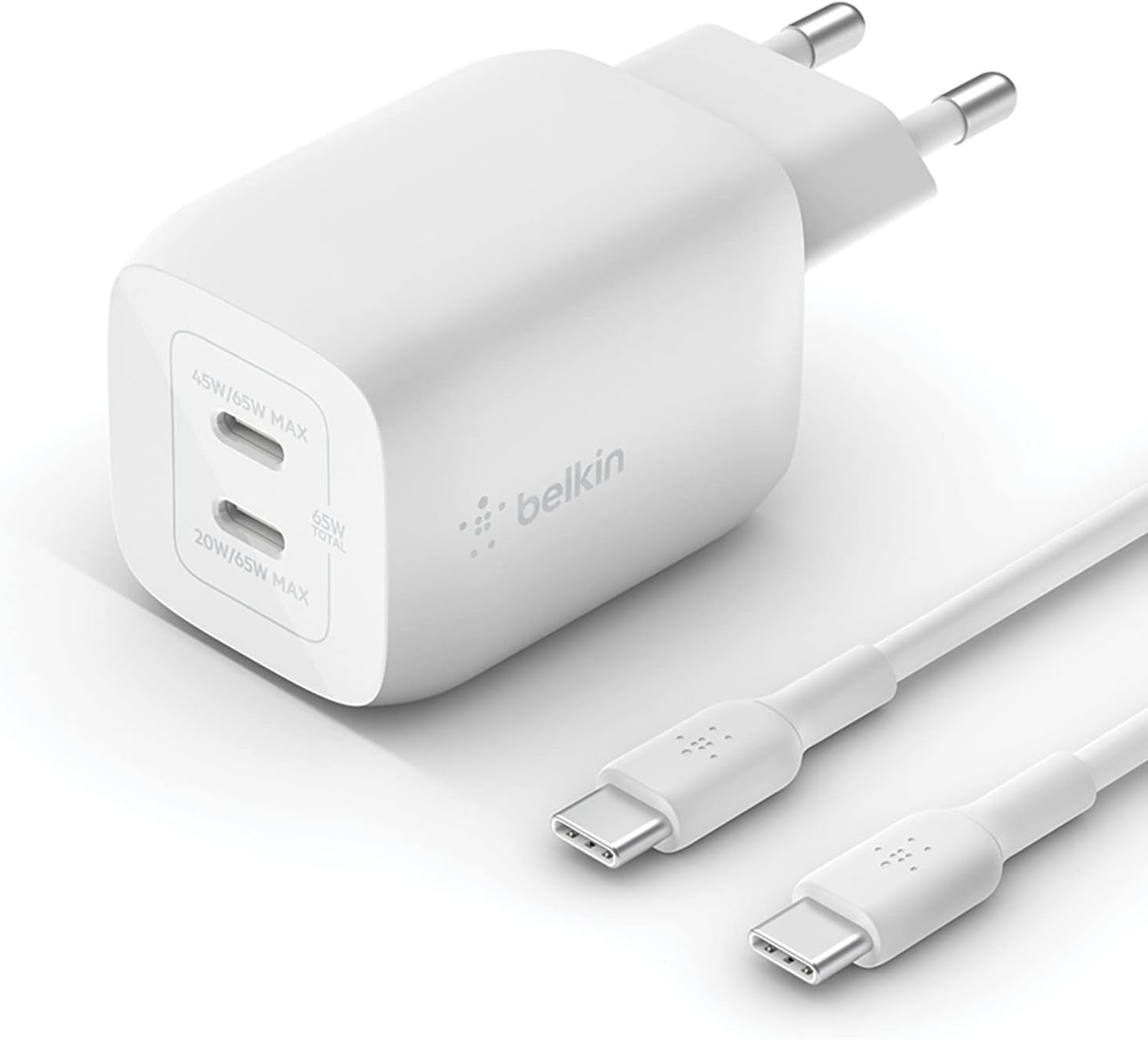 Belkin chargeur secteur double port USB‑C 65 W GaN (Power Delivery 3.0, câble USB‑C vers USB‑C inclus)