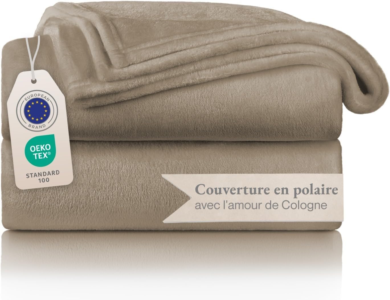 Sur le papier, le positionnement est assez clair : un plaid polaire épais, annoncé extra doux, avec un usage simple au quotidien. Le choix de la couleur taupe aide aussi à rester dans quelque chose de facile à assortir, même si l’ensemble reste surtout orienté “confort et praticité” plutôt que décoration ultra affirmée.