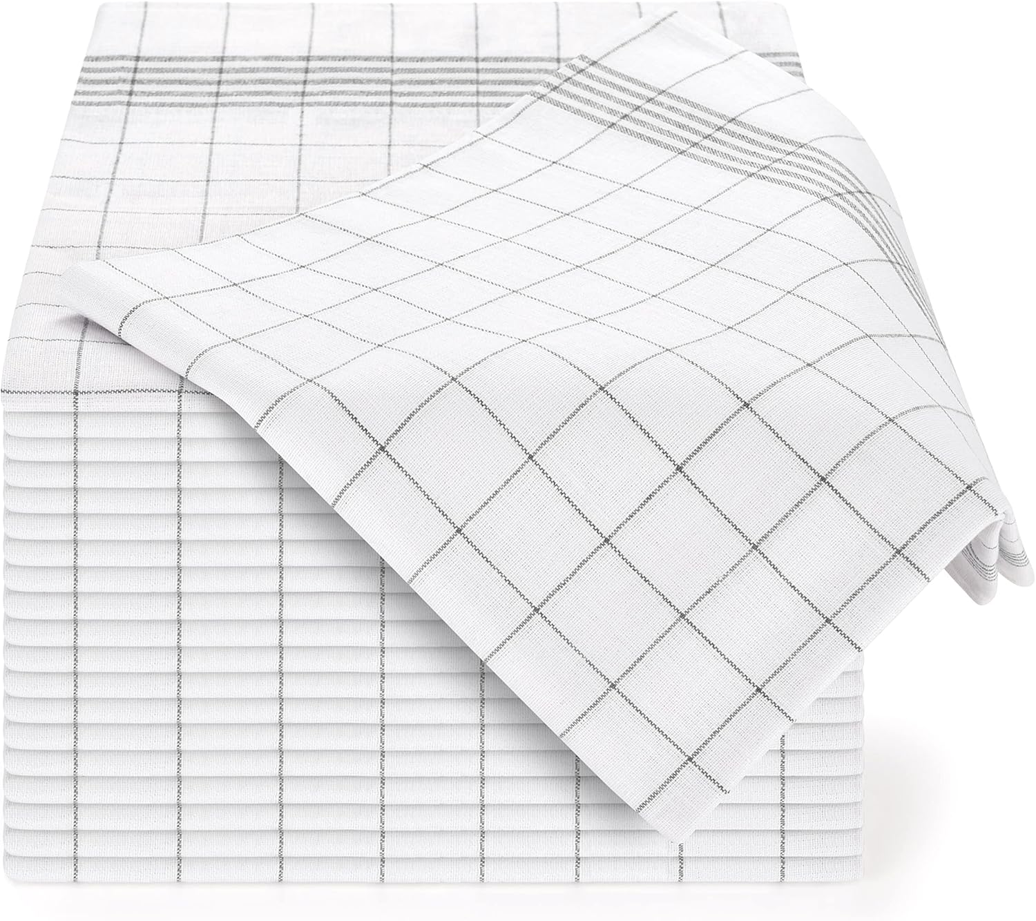 Blumtal Ensemble de torchons cuisine Premium 50x70 cm en Coton - Lot de 10 (gris à carreaux)