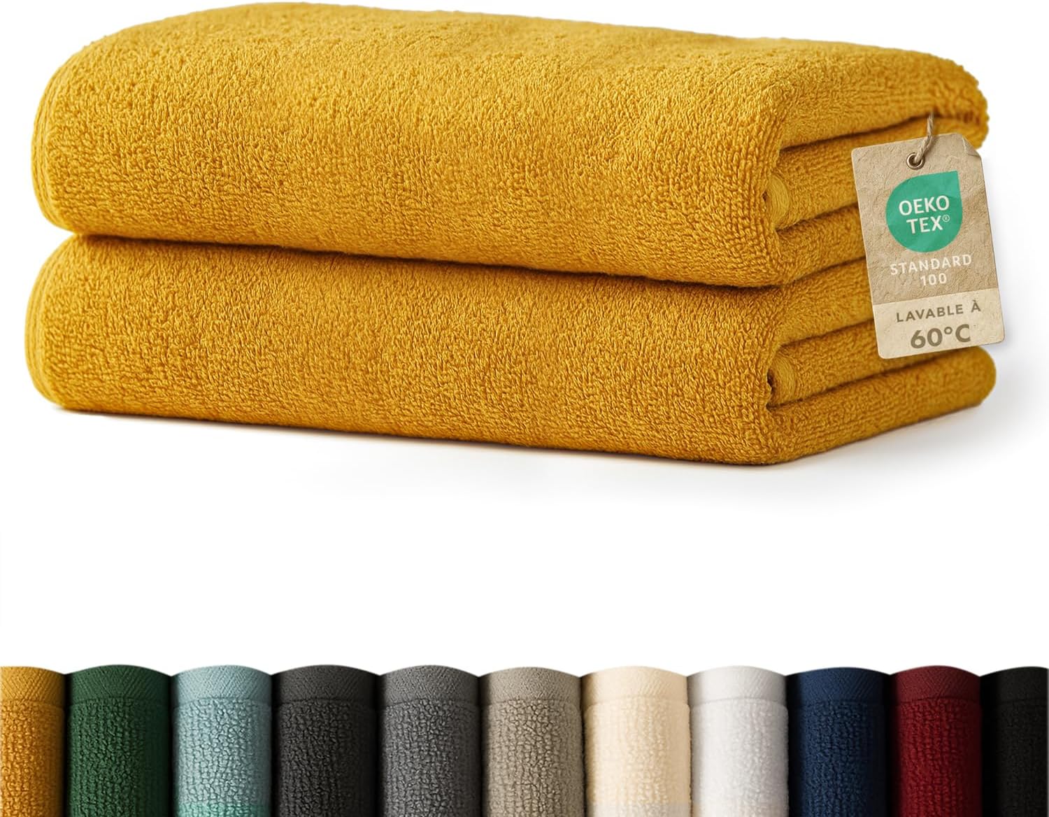 Blumtal – Lot de 2 serviettes de bain jaune moutarde 70x140 cm en coton certifié Oeko-Tex®
