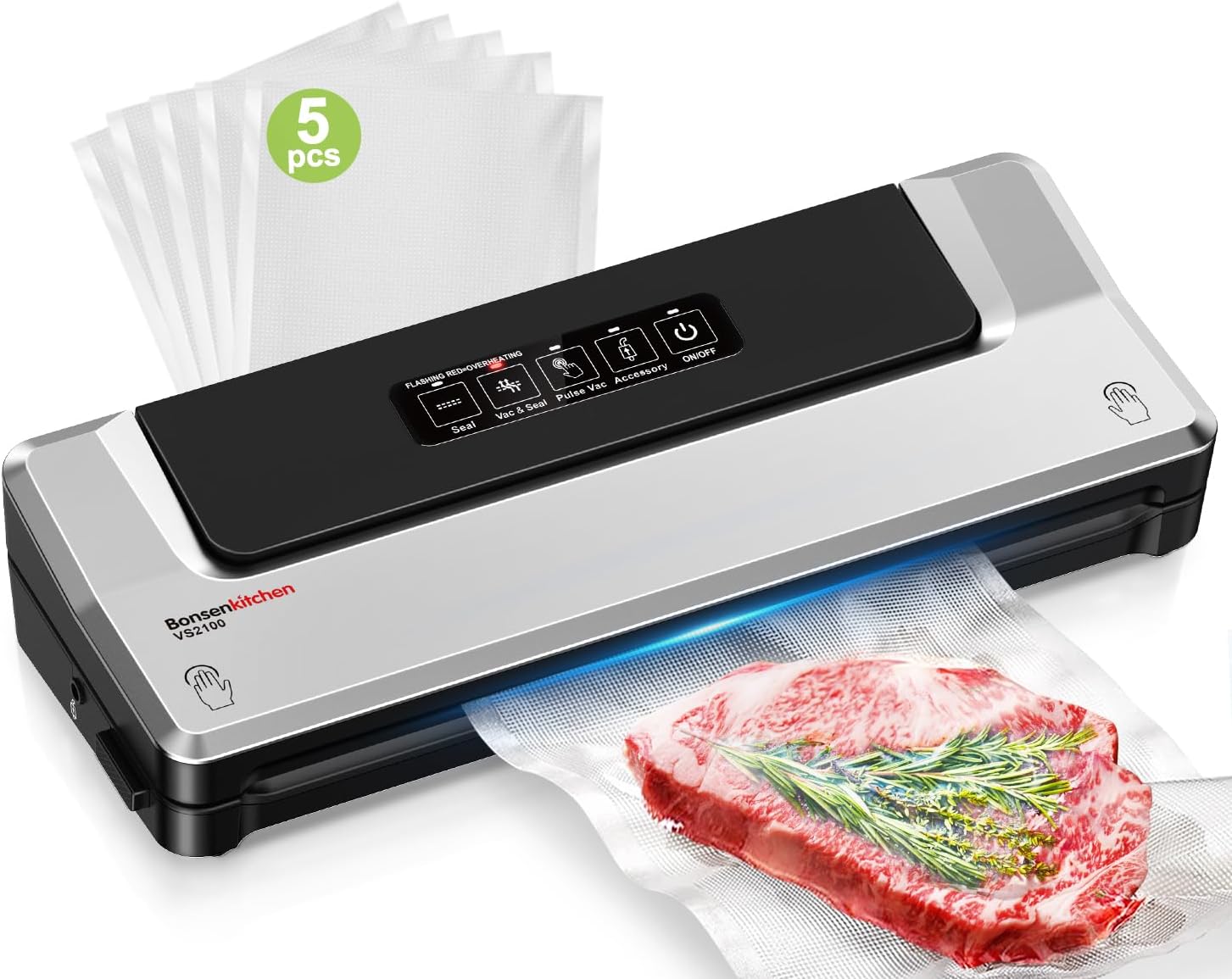 Bonsenkitchen Machine sous vide alimentaire avec double soudure et 5 sacs (20×30 cm)