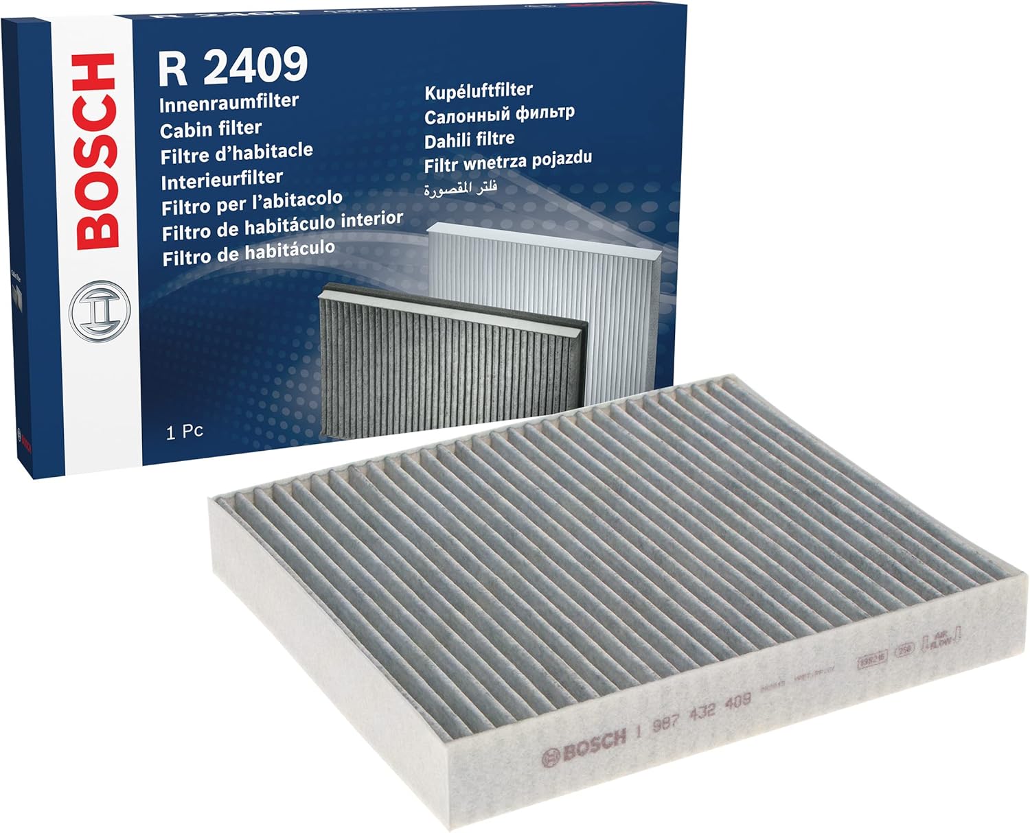 Bosch R2409 Filtre d’habitacle à charbon actif (remplacement) contre mauvaises odeurs, pollen et poussière