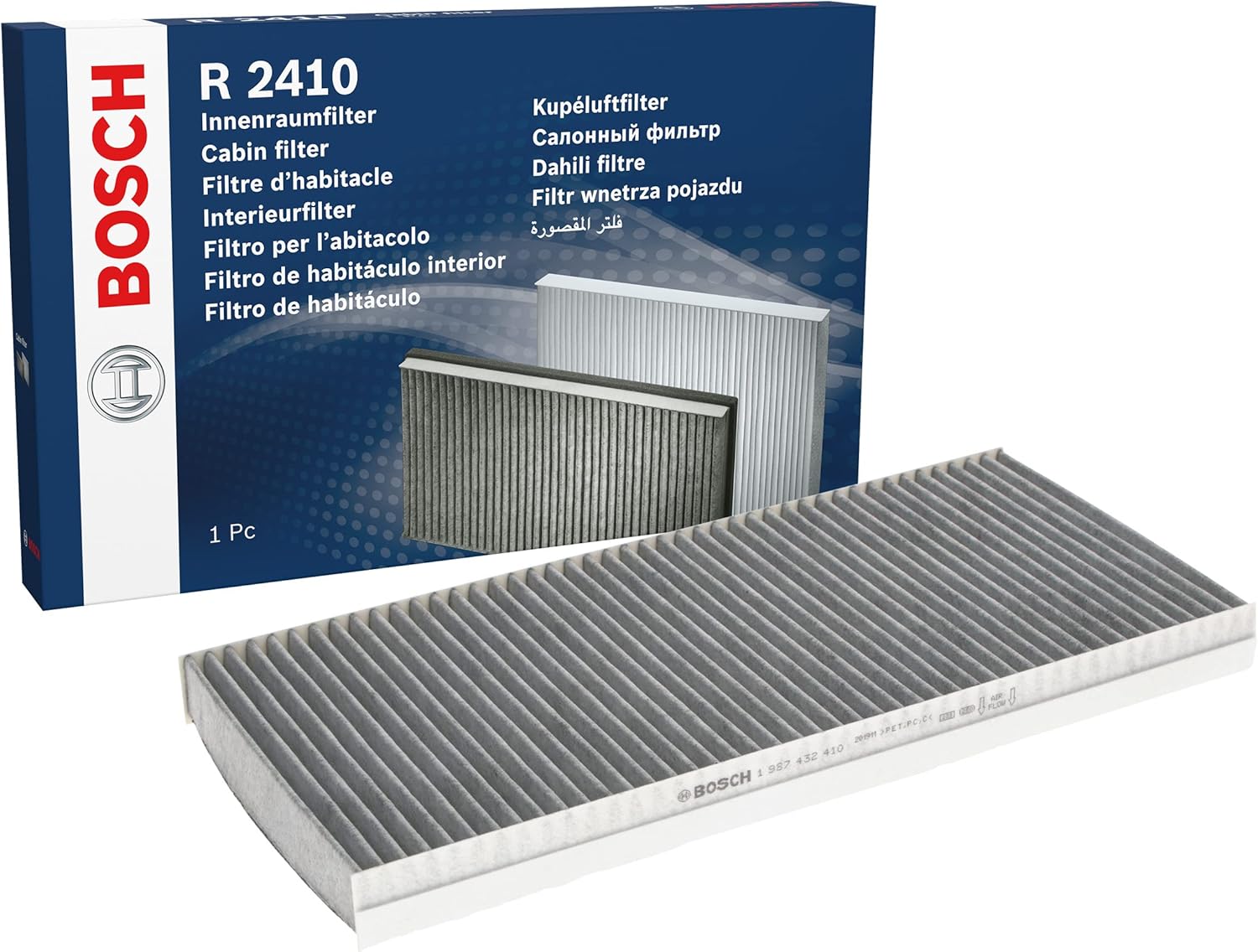 Bosch R2410 filtre d’habitacle à charbon actif (remplacement) contre mauvaises odeurs, pollen et poussière