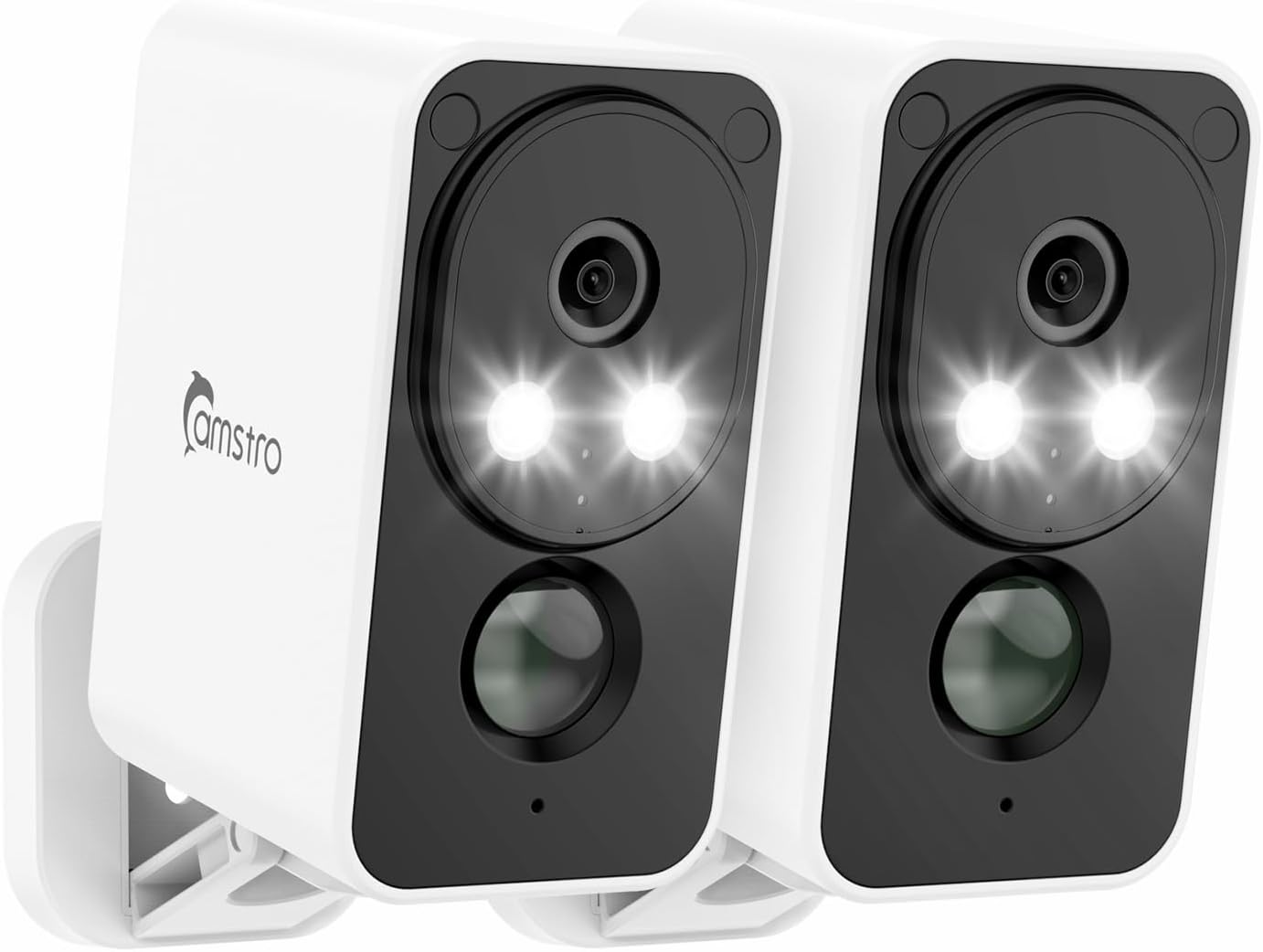 CAMSTRO 2 caméras extérieures 2K sans fil Wi-Fi 2,4 GHz, vision nocturne couleur, PIR et audio bidirectionnel