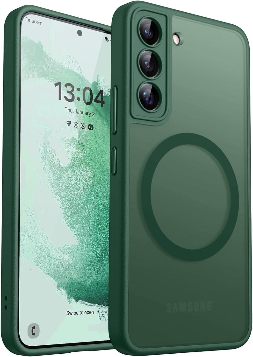 CANSHN Coque Magnétique pour Samsung Galaxy S22 — Translucide Vert Foncé, Protection Appareil Photo et MagSafe