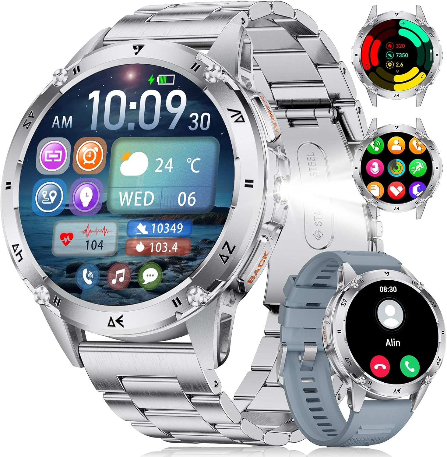 La CHOOSETIME Montre connectée pour homme vise clairement un usage quotidien : voir les messages, gérer des appels Bluetooth, et garder un œil sur l’activité et le sommeil. Sur le papier, elle combine aussi une option qu’on n’utilise pas tous les jours mais qui rassure beaucoup quand on en a besoin : une lampe torche à LED.