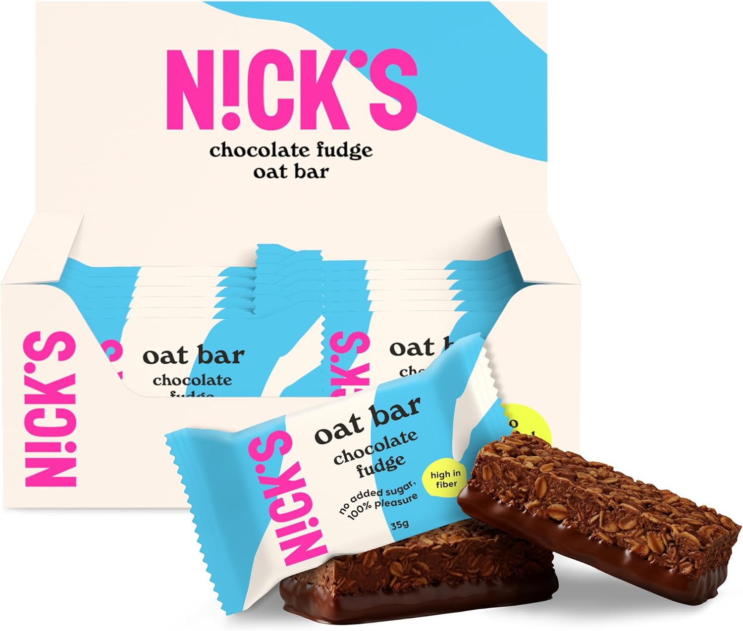 N!CK’S NICKS Barre d’avoine fudge au chocolat (flapjack) – sans sucre ajouté, riche en fibres – 12x35 g