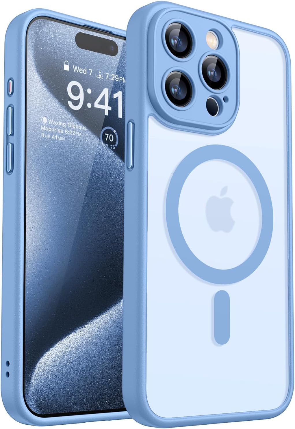 Coque magnétique CANSHN pour iPhone 15 Pro 6,1 pouces compatible MagSafe – fond mat translucide bleu clair