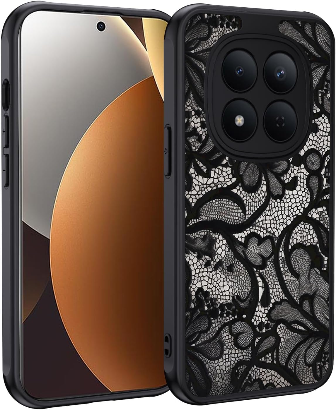 Coque XTCASE pour Xiaomi Redmi Note 15 Pro Plus 5G – Motif vintage en dentelle noire, dos PC dur + bumper TPU