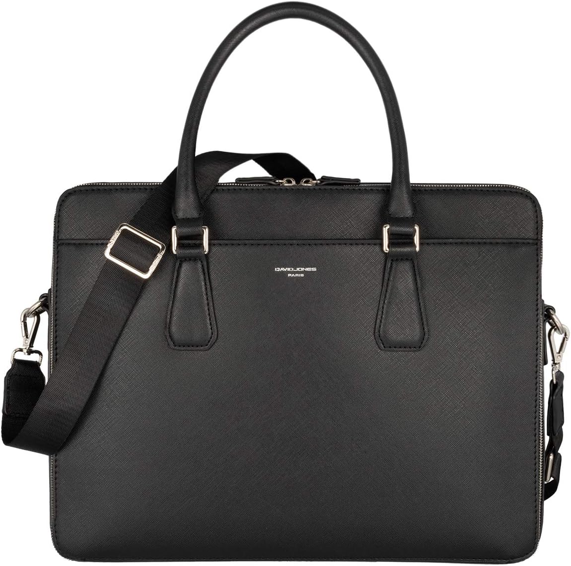 La présentation est professionnelle, la matière affiche un grain structuré façon Saffiano et les fermetures métalliques apportent une tenue stable. David Jones - Sac à Main Business se distingue par sa grande ouverture sur un compartiment principal, une poche avant à bouton magnétique et une poche arrière zippée. Confortable à porter, la bandoulière large et réglable permet un porté épaule ou croisé sans frottement. 🎒