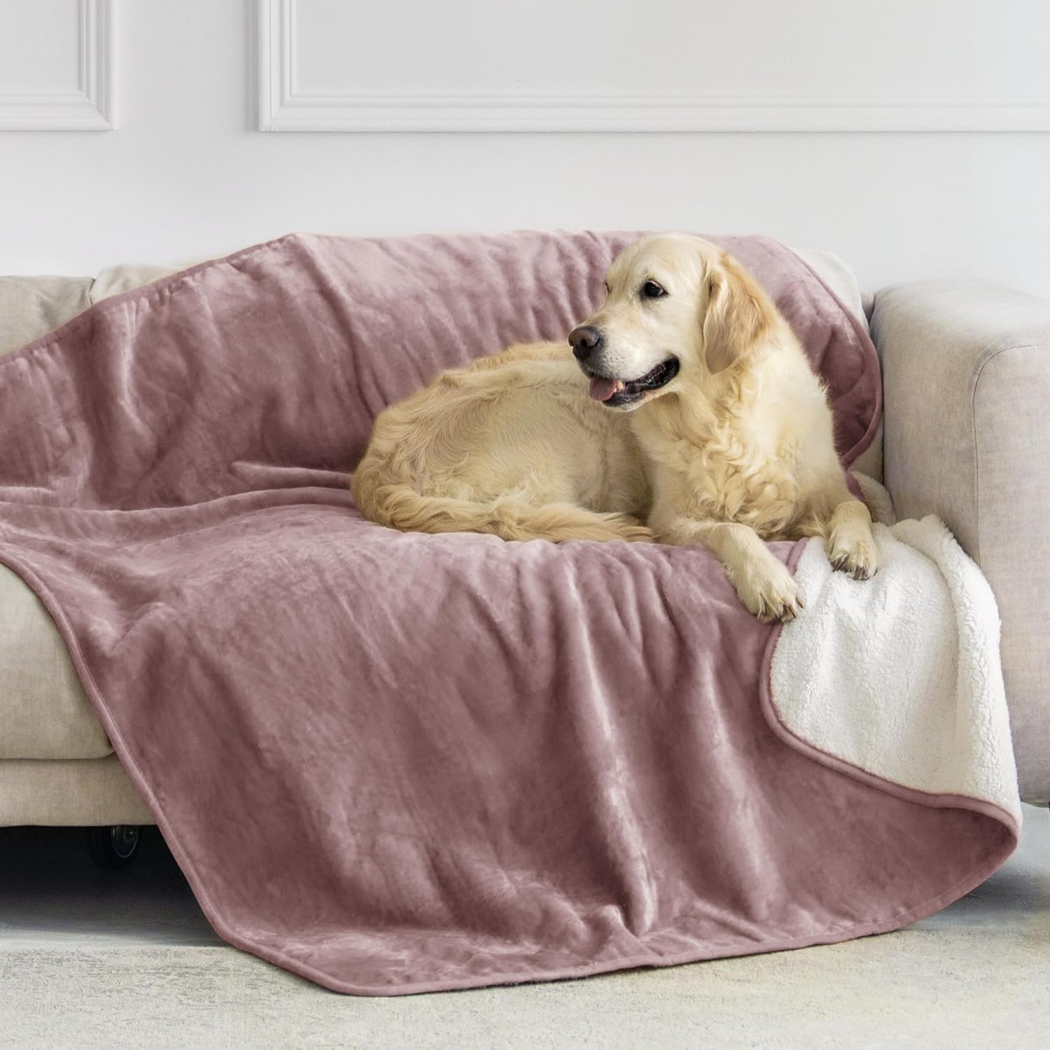 Dreamzie Plaid imperméable pour chien 127×152 cm réversible polaire sherpa (rose clair)