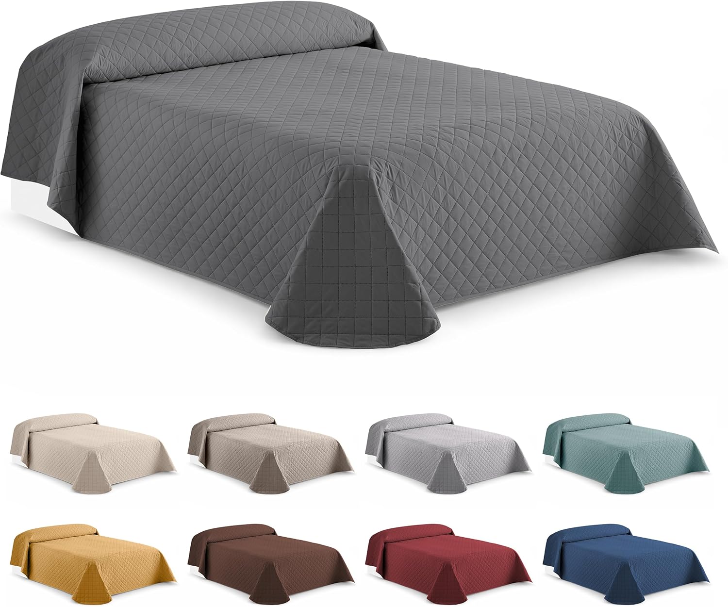 Micro-expérience d’usage : imagine ton lit refait le matin. Tu poses la housse/couvre-lit en le centrant, puis tu le laisses tomber sur les côtés. Le motif losanges et l’effet matelassé donnent rapidement une finition soignée, sans que la pièce ne paraisse épaisse ou volumineuse. Le gris fonctionne aussi bien sur des décors sobres que sur des ambiances plus chaleureuses.