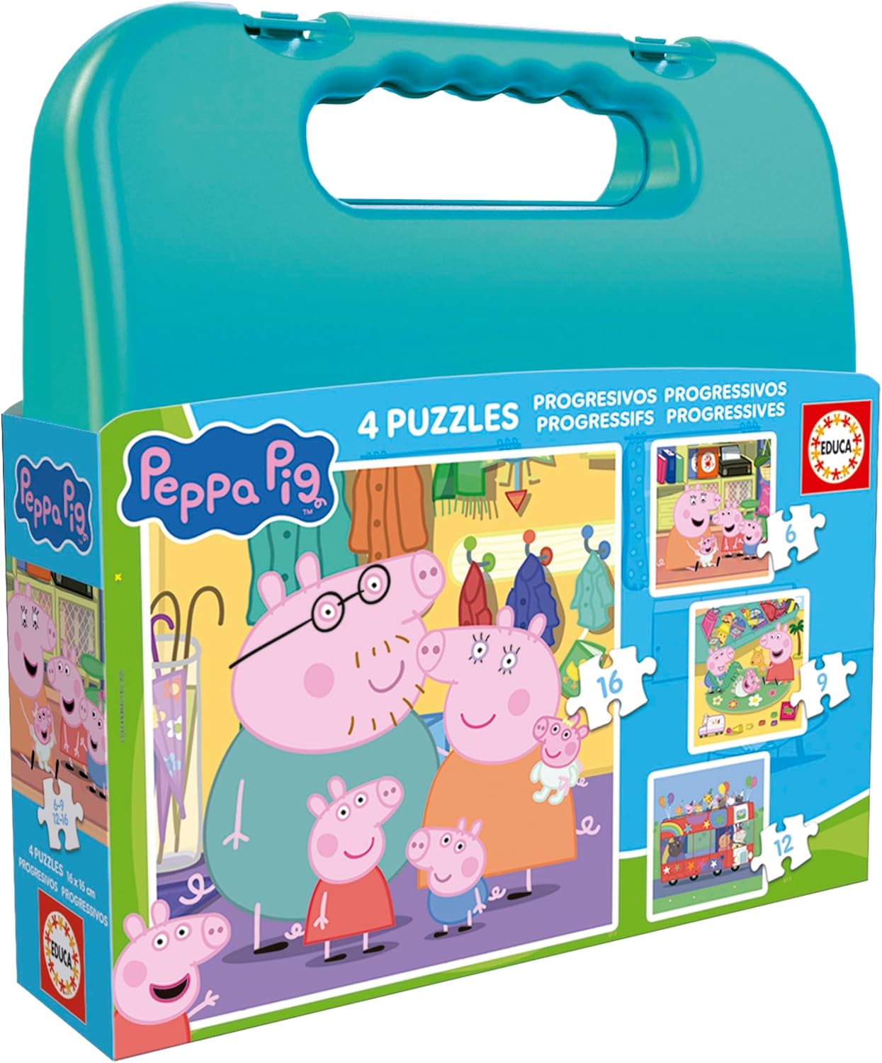 Educa Peppa Pig – Lot de 4 puzzles progressifs (6, 9, 12 et 16 pièces) en valisette