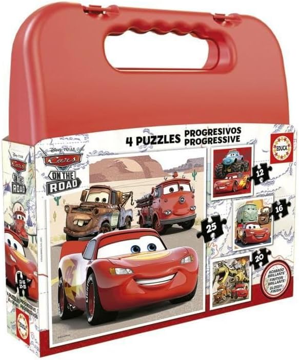Educa Puzzles Cars – Ensemble de 4 puzzles progressifs (12 à 25 pièces) dans une mallette