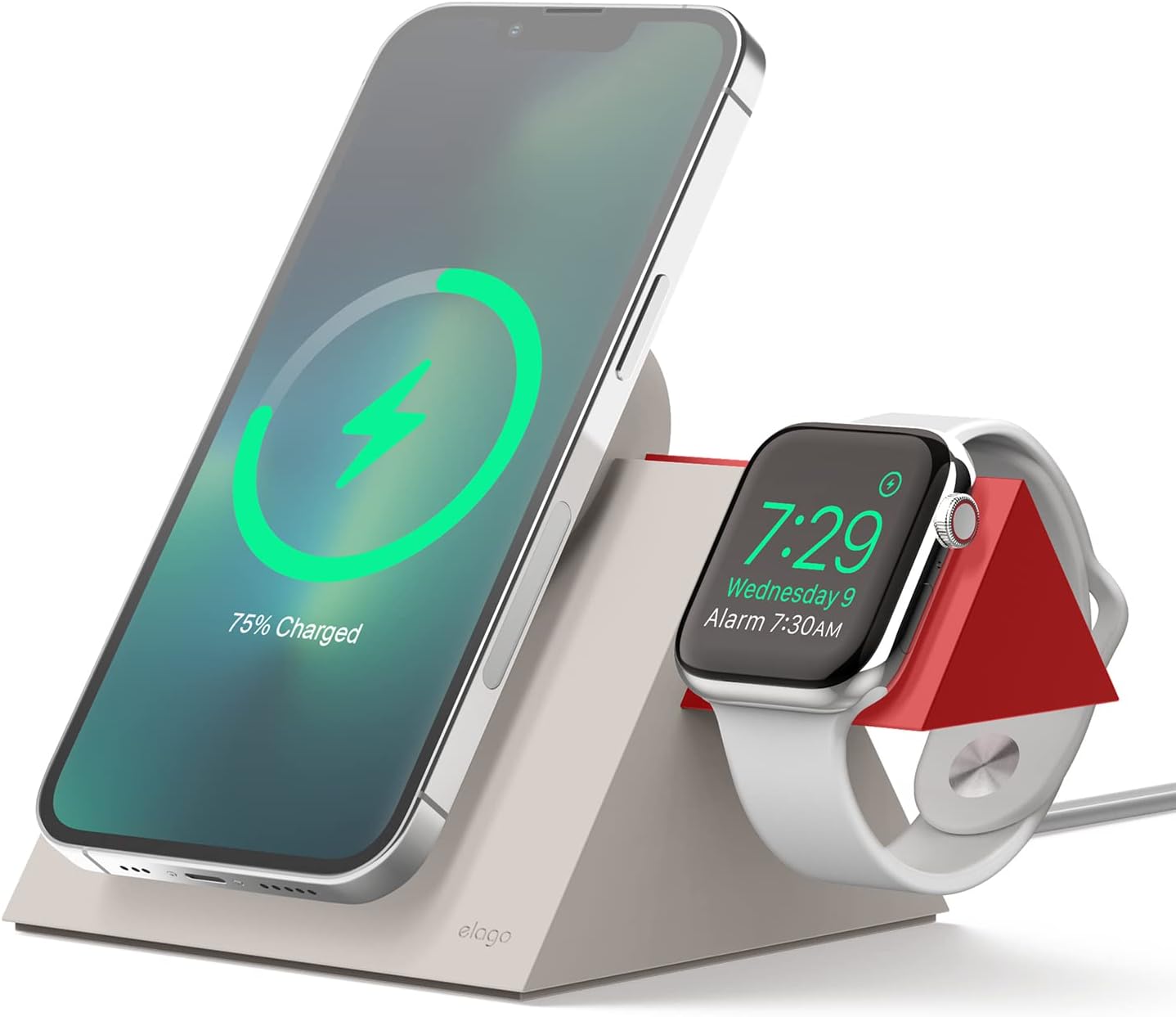 elago MS5 Duo Support de charge MagSafe + Apple Watch (Stone + Rouge) — charge téléphone et montre sur votre bureau