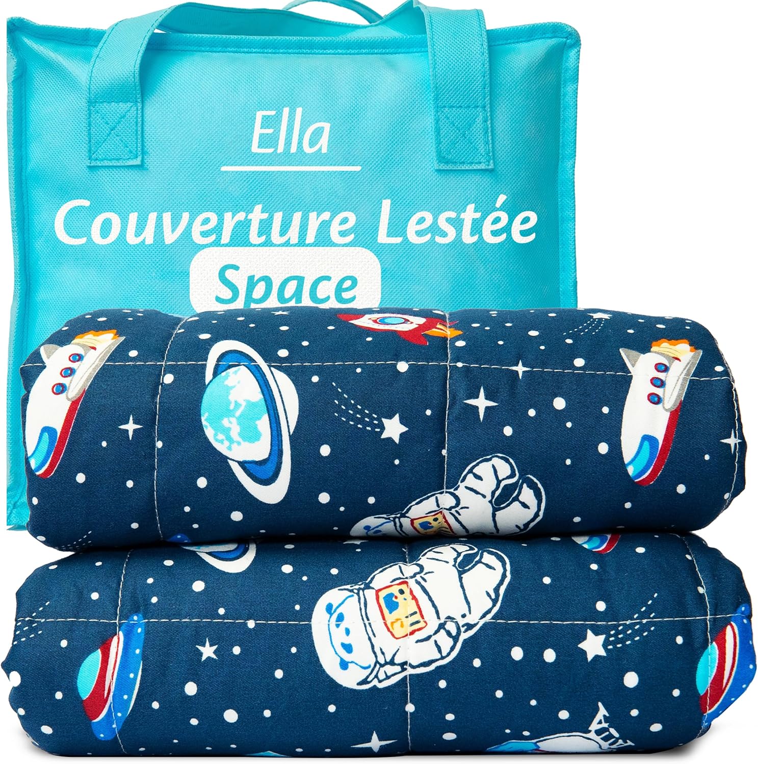 La difficulté à s’endormir n’a rien d’un détail : entre les distractions, les écrans et les stimulations, beaucoup d’enfants mettent plus de temps à retomber. Sur ce point, une couverture lestée comme l’Ella (3,2 kg, format 100x150 cm) se positionne comme un outil de relaxation. Son principe est simple sur le papier : la stimulation par pression profonde est censée calmer l’agitation, réduire le stress et apporter une sensation “câlin” qui aide à s’apaiser.