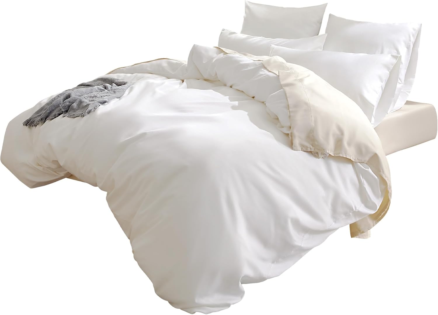 - Dreamzie parure housse de couette 260 x 240 cm microfibre beige blanc avec 2 taies 65 x 65 cm
