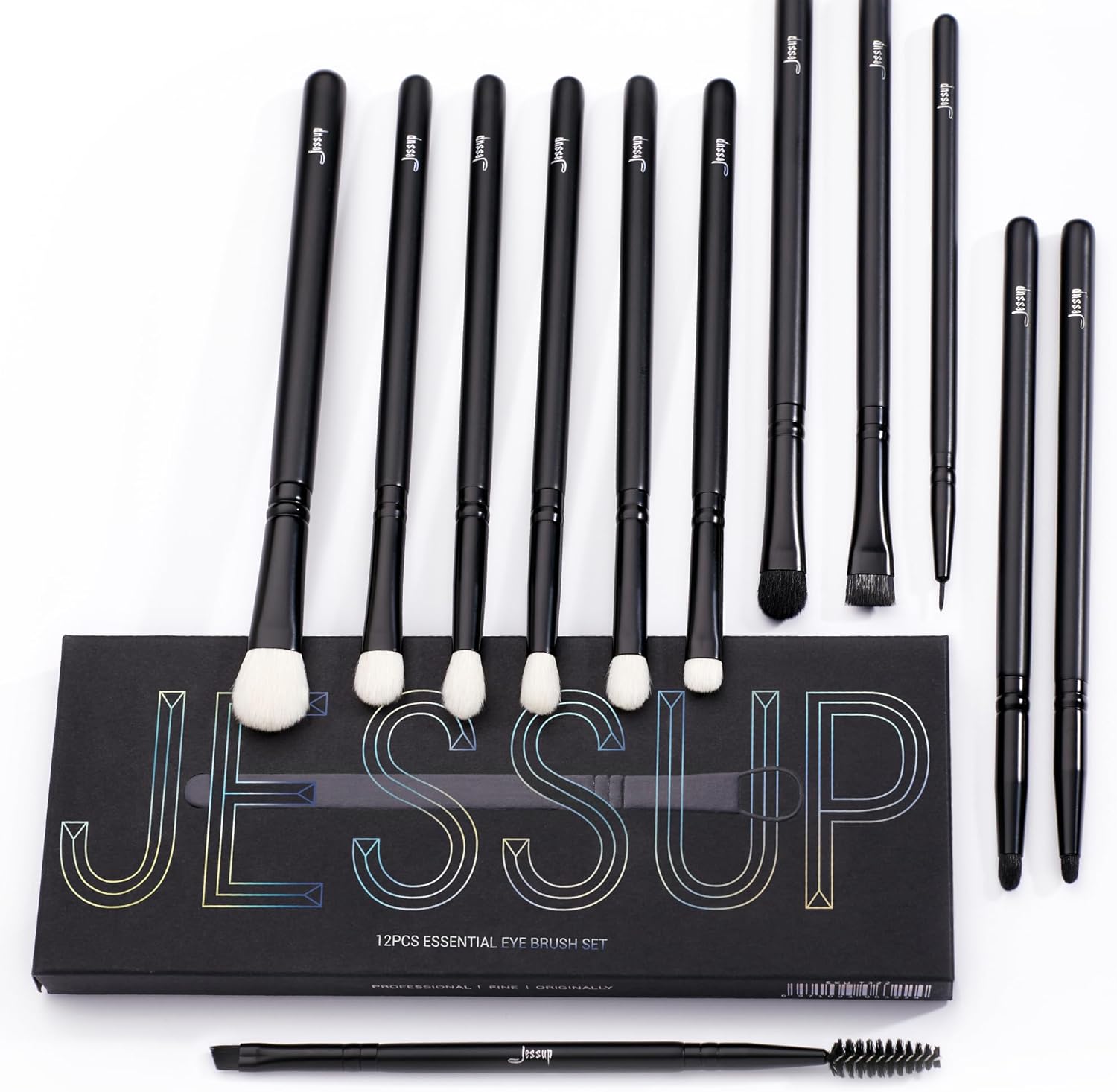 Ensemble de pinceaux pour maquillage des yeux Jessup (12 pièces) T322 – poils synthétiques doux, travail des ombres, eyeliner et sourcils
