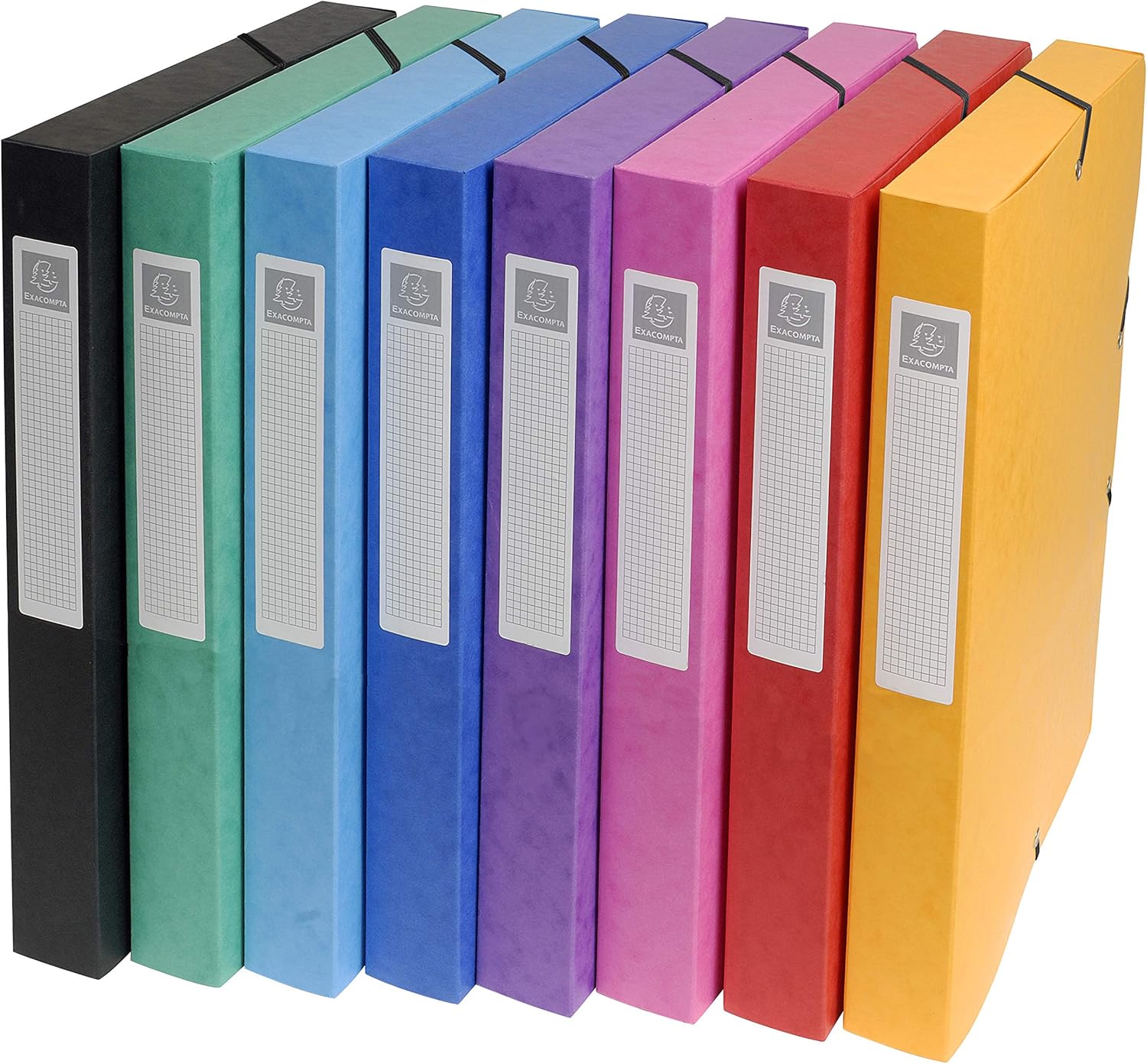Exacompta 50300E — 8 boîtes de classement à élastiques Exabox, cartes lustrées 600 g/m², 25 mm, 25 x 33 cm, 8 couleurs assorties