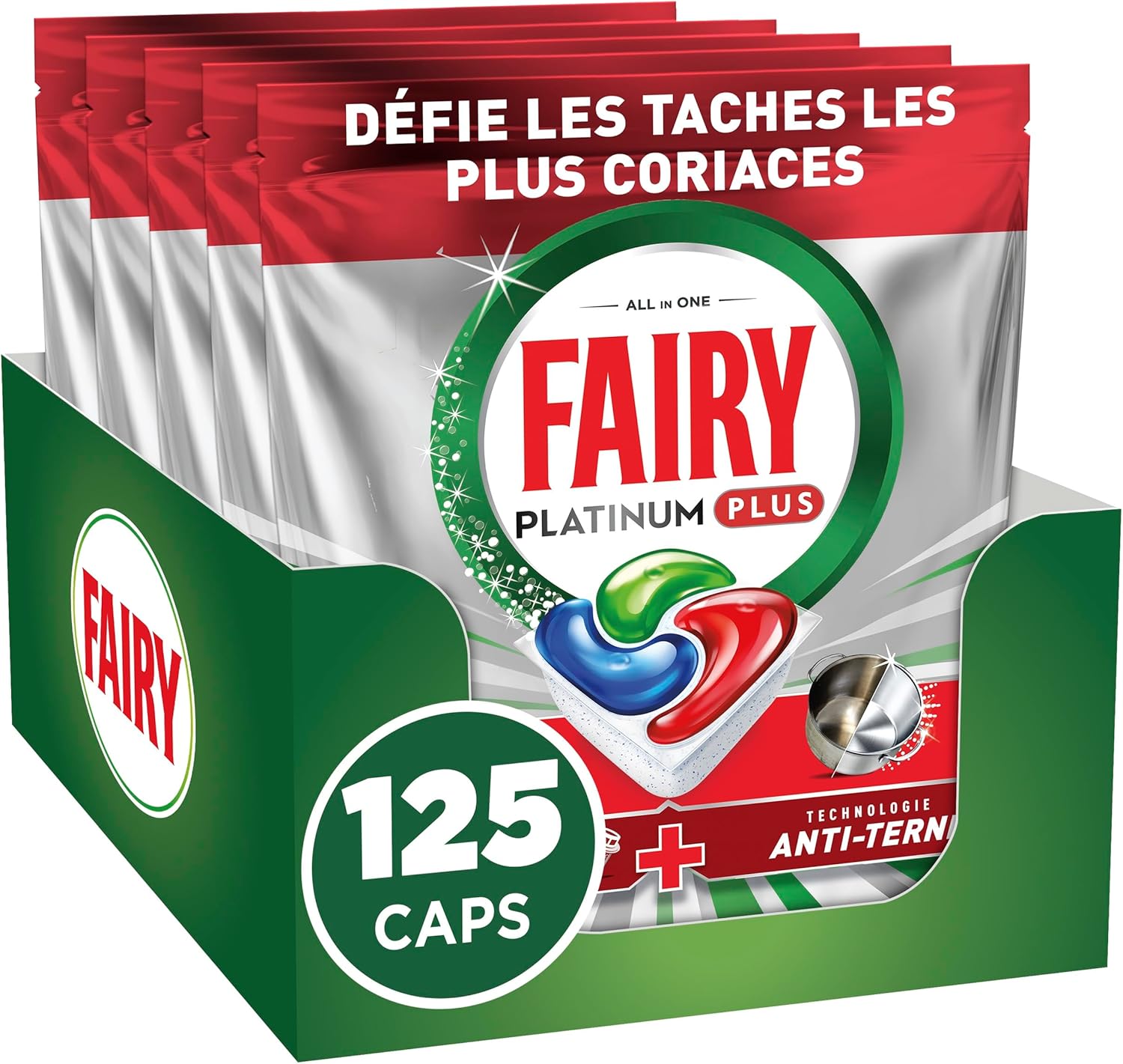 Fairy Platinum Plus tablettes lave-vaisselle – 125 lavages (sans parfum), anti-terne et anti-calcaire