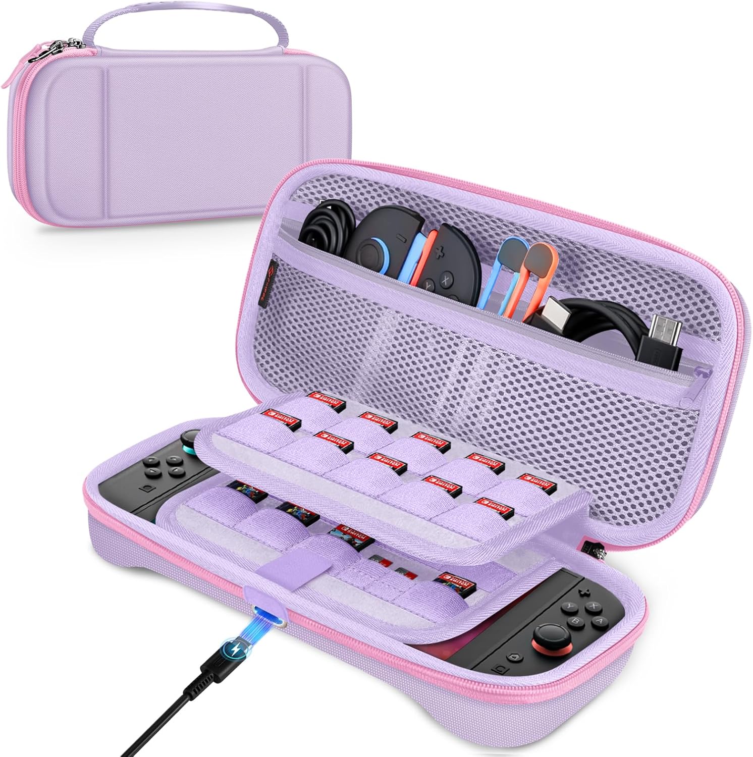 FINTIE Étui rigide EVA pour Nintendo Switch 2 (2025) lilas avec rangement pour 19 cartes