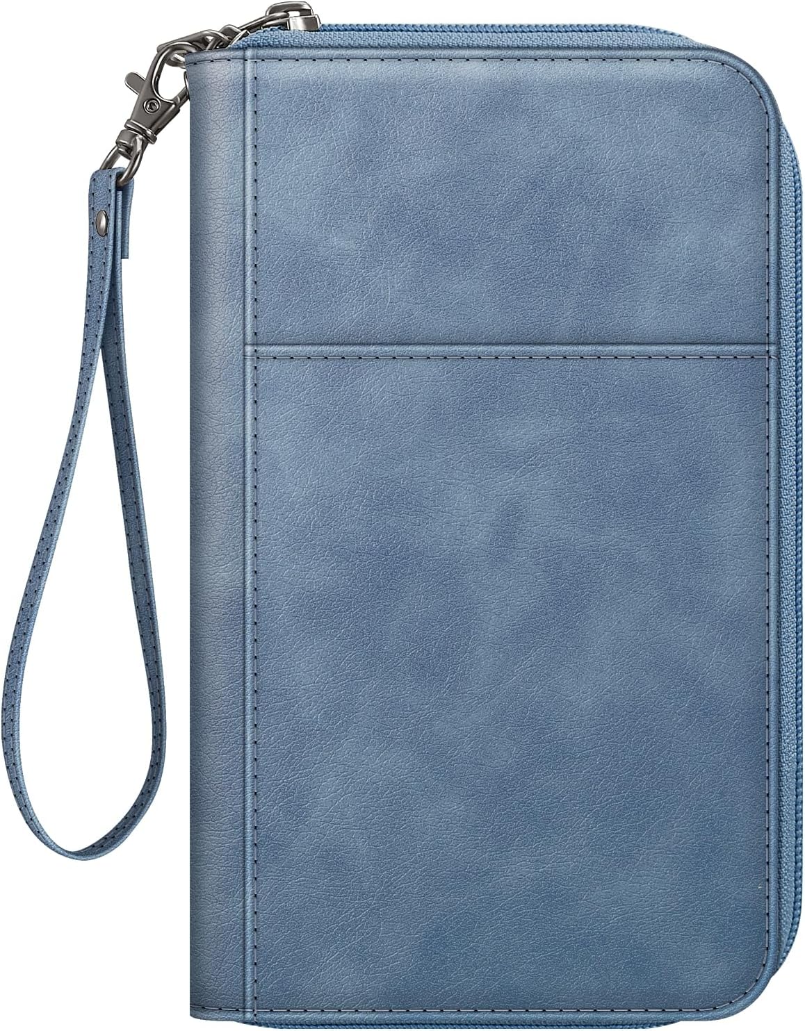 FINTIE Portefeuille passeport familial avec blocage RFID et 5 emplacements pour passeports (bleu)
