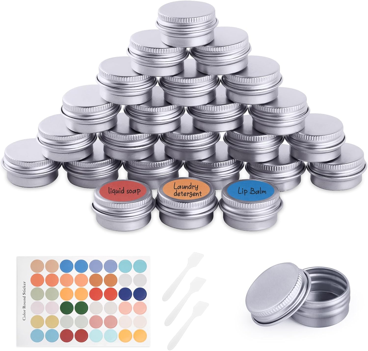 L’intérêt, sur le papier, c’est de combiner format pratique et fermeture par couvercle à vis, avec un contenu visible grâce à des pots annoncés transparents. On gagne aussi en organisation : l’ensemble est fourni avec spatule et étiquette, ce qui aide à savoir rapidement ce qu’il y a dans chaque pot.