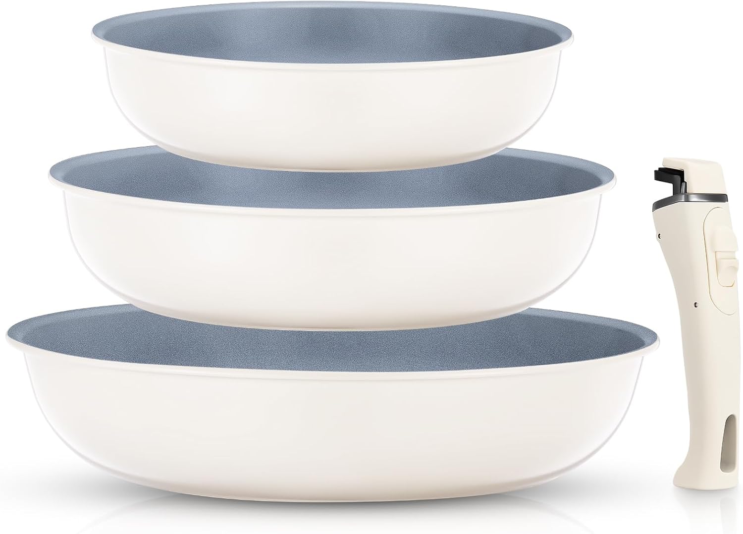 - FOHERE lot de 3 poêles 20/24/28 cm avec poignée amovible (induction, céramique, passe au four)