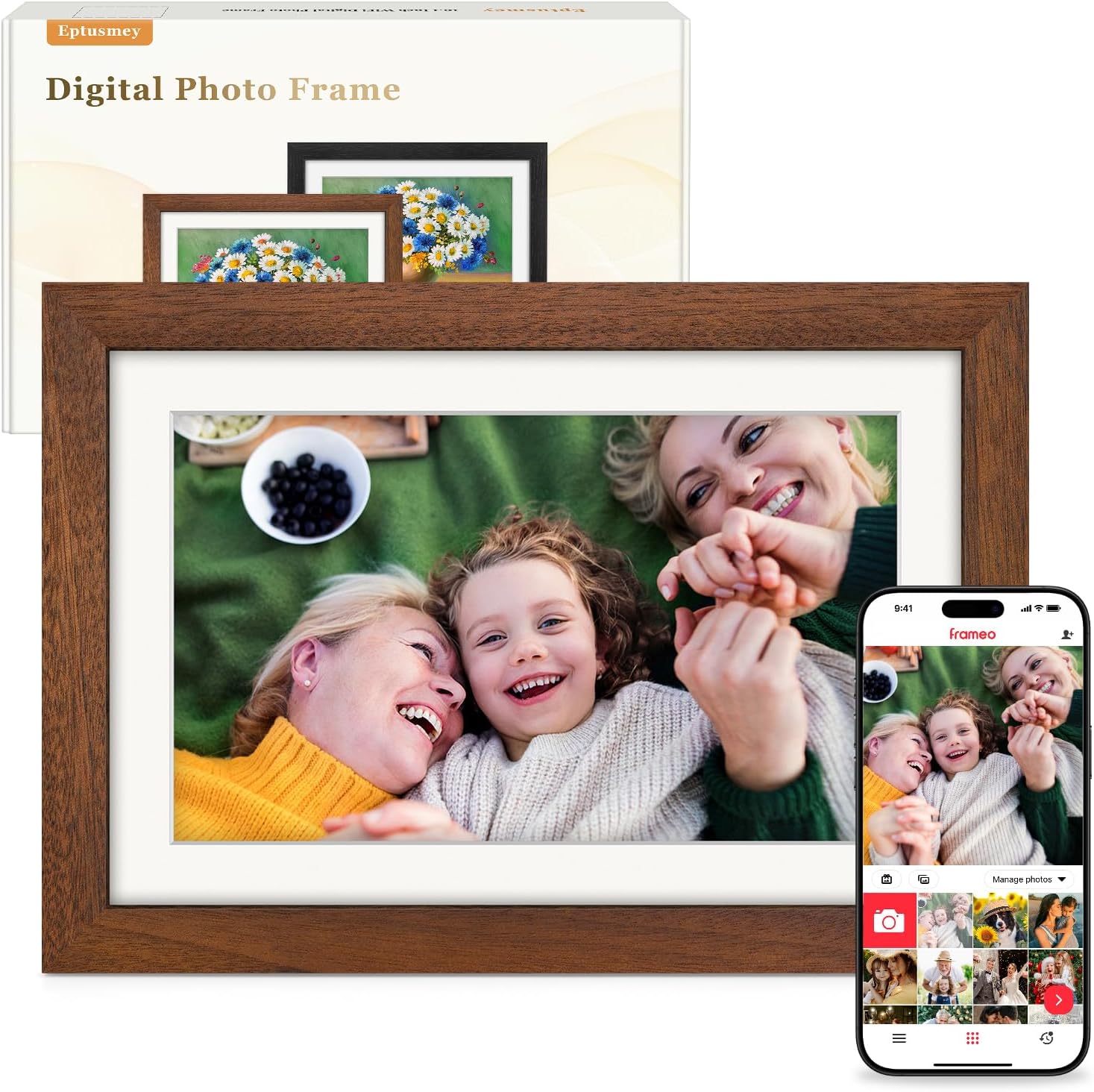 Le Frameo Cadre Photo Numérique Wireless de 10,1 pouces associe l’élégance du bois de noyer à une expérience numérique simple pour afficher vos souvenirs. Conçu pour être à la fois fonctionnel et décoratif, il peut trouver sa place dans une chambre, un salon ou un bureau. Il est pensé pour faciliter le partage de photos et vidéos via l’application Frameo, ou encore par USB/SD, sans nécessiter d’ordinateur. Cette fiche se concentre sur ce que l’appareil peut apporter au quotidien et sur les points à surveiller avant l’achat.