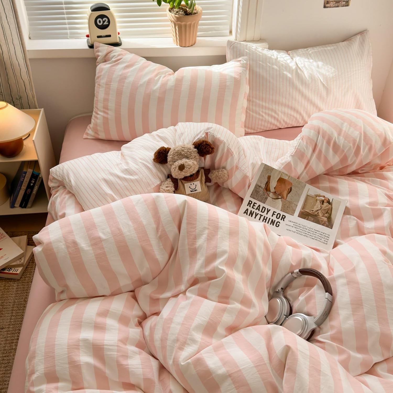 Ça a du sens si tu veux une parure pour une chambre occupée au quotidien (ados, adultes, usage régulier), où la priorité est la simplicité : enfiler vite, limiter le glissement, et profiter d’un toucher doux. Le motif rayures et la palette rose et blanc peuvent aussi bien fonctionner dans une chambre qui a besoin d’une touche de couleur “douce”, sans partir dans quelque chose de trop chargé.