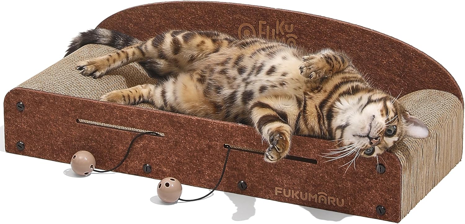 FUKUMARU Grattoir pour chat en carton de 66 cm avec 2 griffoirs réversibles et balle cloche