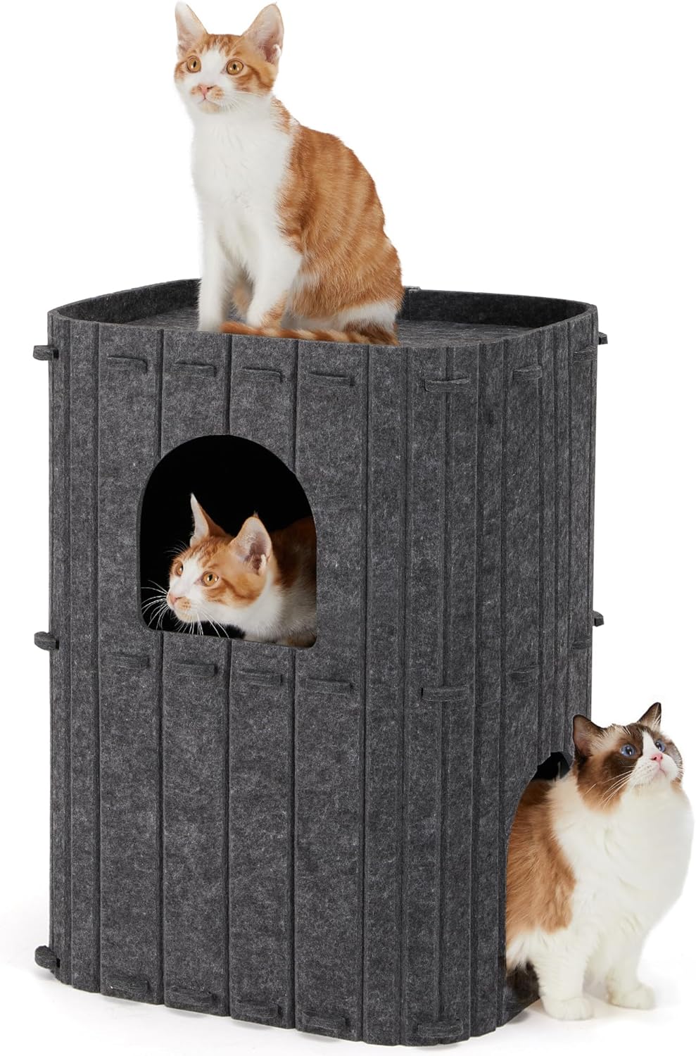FUKUMARU Niche pour chat d’intérieur 2 étages en feutre gris (45 x 36,5 x 60 cm)